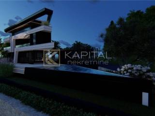 Lovran, luxury villa of 330 m2. In the basement there is a garage for two cars, fitness sauna and boiler room. The ground floor consists of a large living room with kitchen and dining area, toilet, pantry and terrace. On the first floor there are 3 bedrooms, each with its own bathroom, and two have a dressing room and a balcony. On the second floor there is a master bedroom with bathroom, dressing room, terrace and jacuzzi. On a plot of 639 m2, next to the villa there is a swimming pool and parking for two more cars. Heating is under the heat pumps and duct air conditioners. Great location, only 150 meters from the sea. For all information call 091 / 450-5150