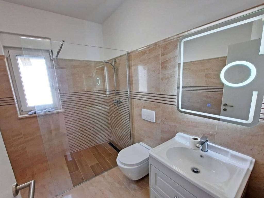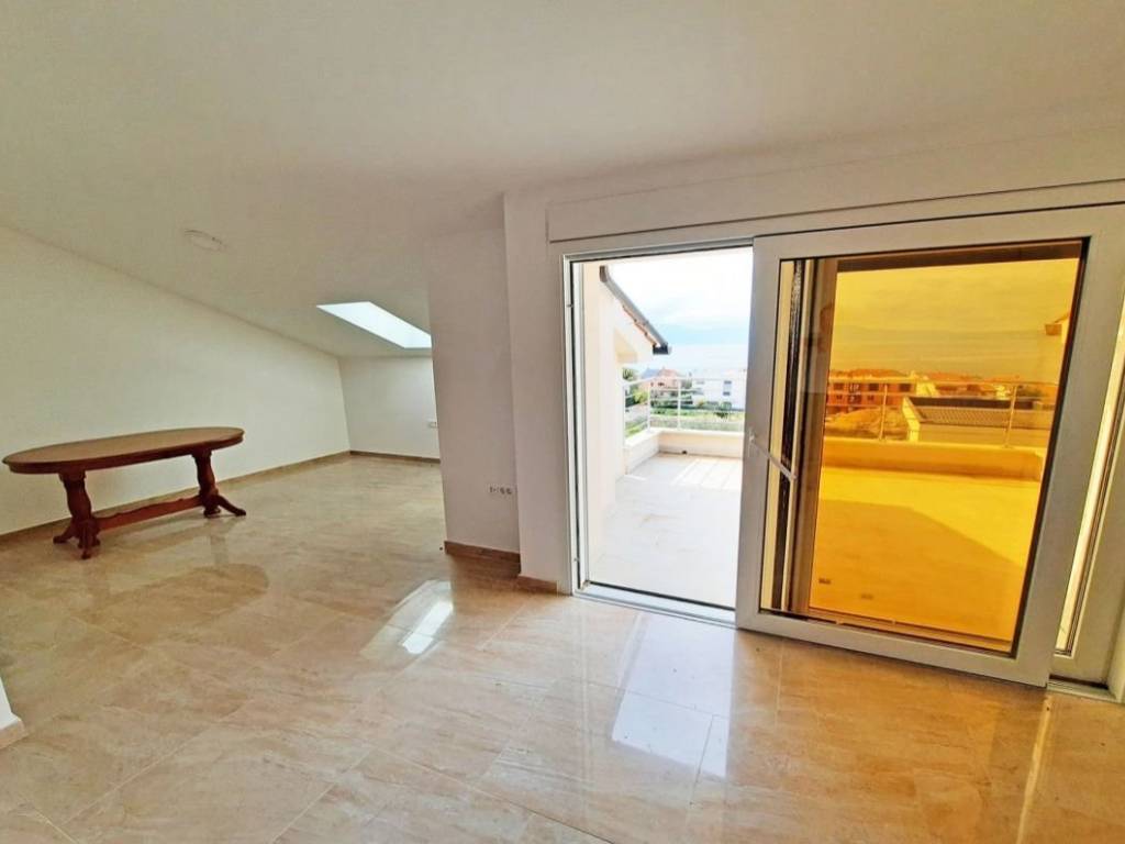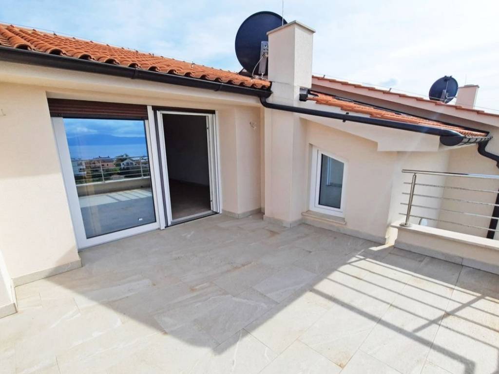 Otok Krk, Njivice, prodaja novog apartmana površine 67,99 m2, u potkrovlju apartmanske zgrade s pogledom na more. Apartman se sastoji od dnevne sobe, kuhinje, blagovaone, dvije spavaće sobe, kupaonice, hodnika i nenatkrivene terase. Kvalitetna gradnja i oprema, PVC stolarija, klimatizacija, parkirno mjesto. Mirna lokacija, 1500 od mora.