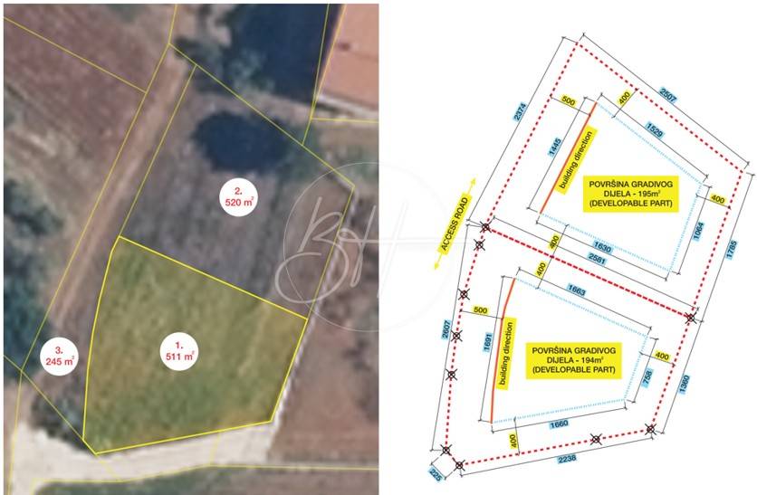 - Oba građevinska zemljišta, nalaze se unutar pojasa od 100 m udaljenosti od mora,