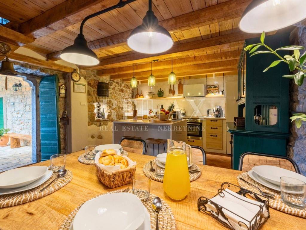 In the heart of picturesque Bribir, this stone house with a pool captivates with its traditional charm and modern comfort at first glance. With a spacious 110 m² of living space and a luxurious garden of 940.34 m², every morning you can start with the scent of lavender from your own garden and a view of the blue sea.