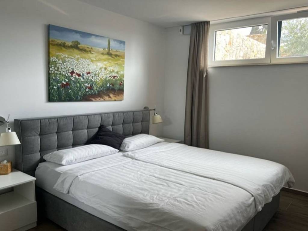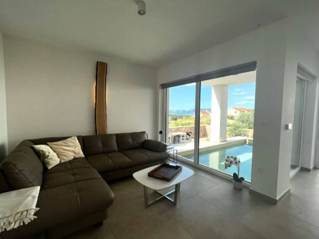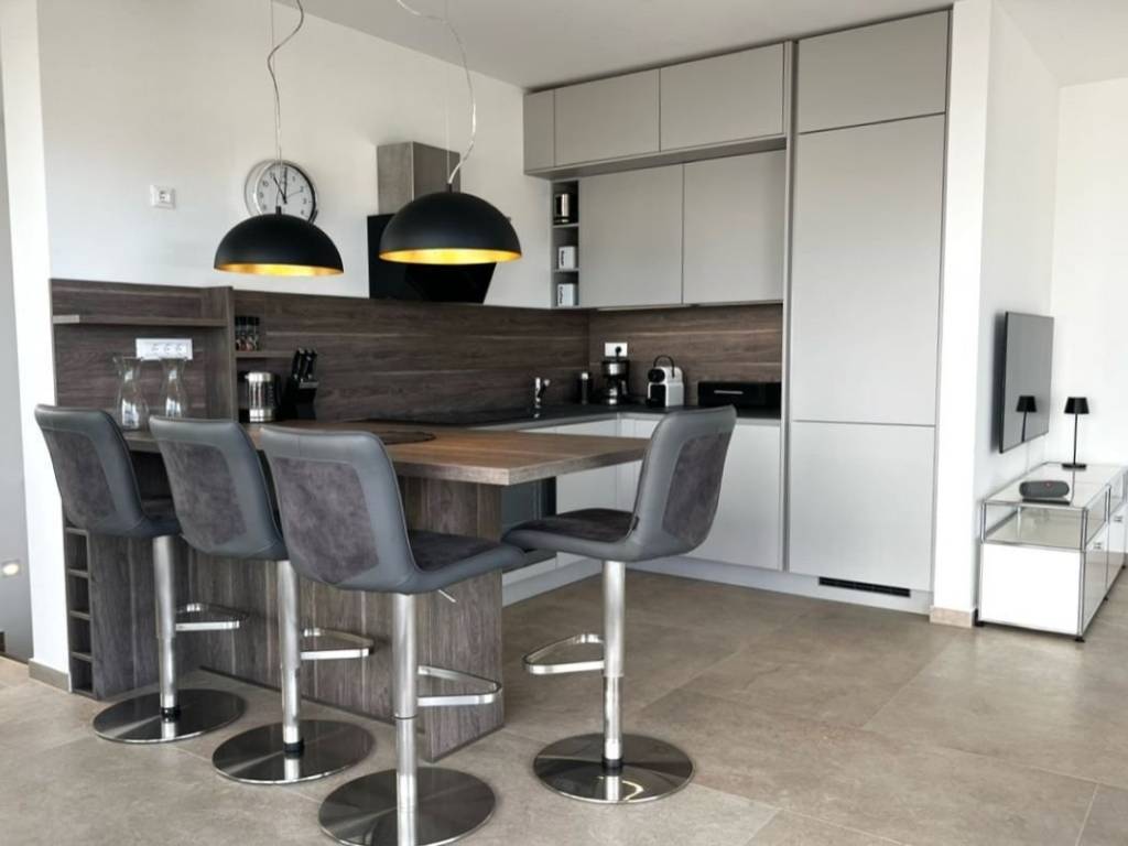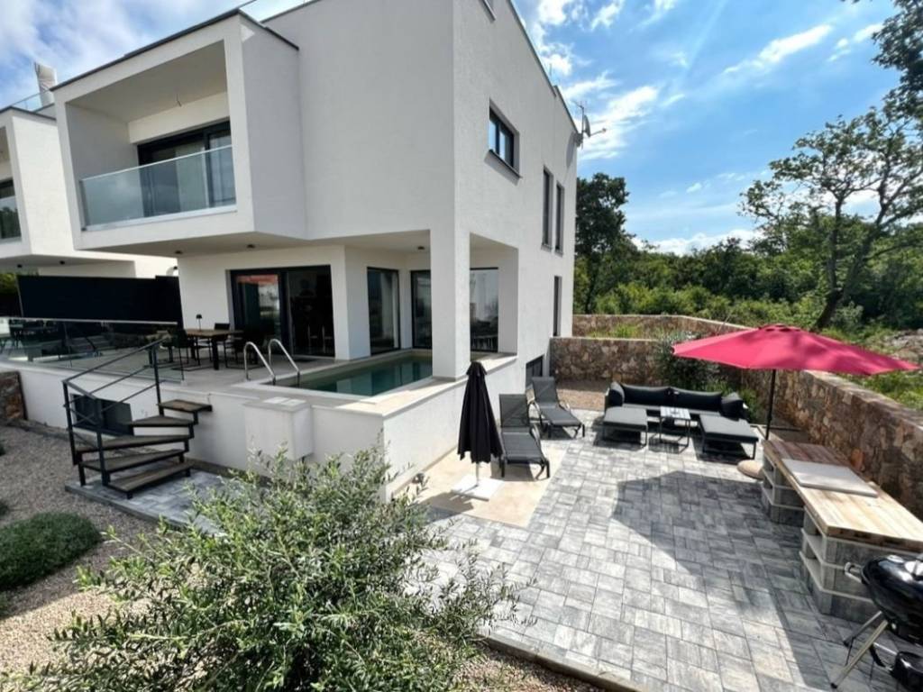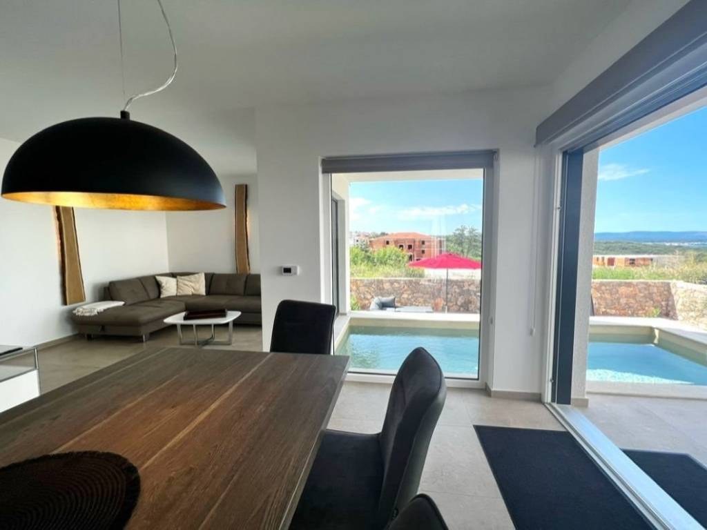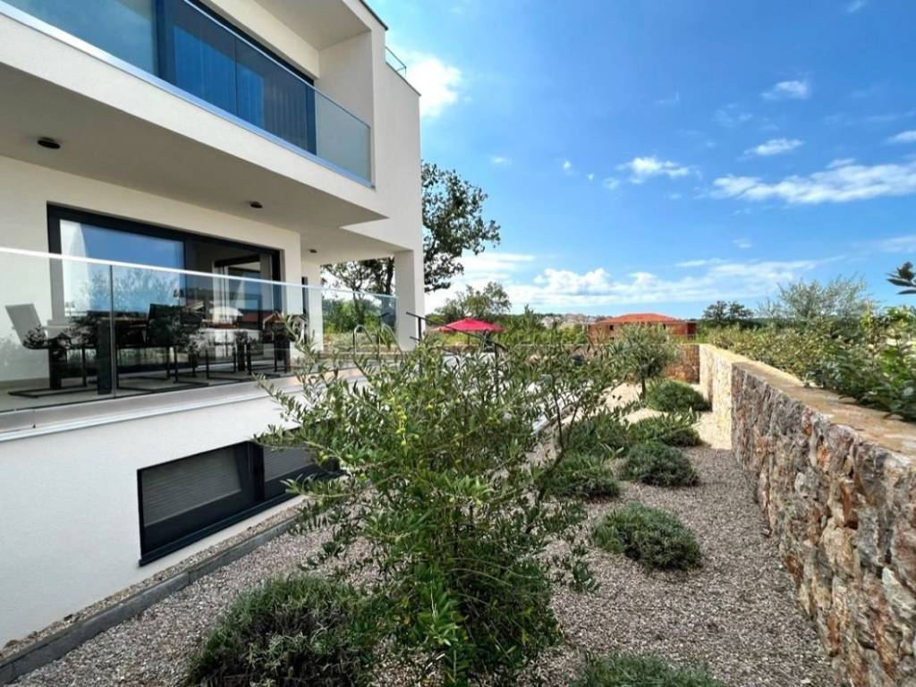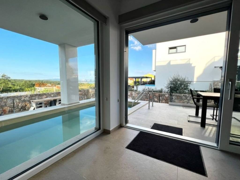 Otok Krk, Njivice, prodaja atraktivnog apartmana površine 76,62 m2, s bazenom, pogledom na more i uređenom okućnicom površine 108 m2. Apartman se sastoji od podruma s tri spavaće sobe, kupaonice, vešeraja, ostave i hodnika te prizemlja s dnevnom sobom s kuhinjom i blagovaonom, kupaonicom i terasom od 14,93 m2. Kvalitetna gradnja i oprema, klimatizacija, podno grijanje, dva parkirna mjesta. Mirna lokacija, 500 m od plaže.