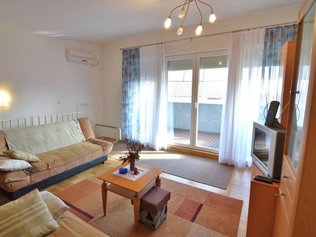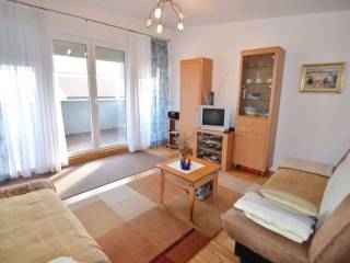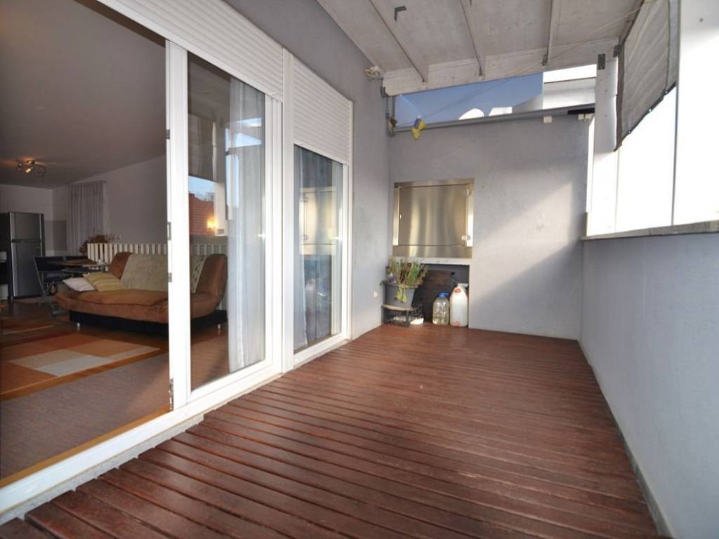 Otok Krk, grad Krk, prodaja dvoetažnog apartmana površine 85,15 m2, na mirnoj lokaciji, 800 m od mora. Apartman se sastoji od prvog kata s tri spavaće sobe, kupaonicom i wc-om te drugog kata s dnevnom sobom, kuhinjom, blagovaonom i natkrivenom terasom površine 11 m2. Klimatizirano, dva parkirna mjesta, telefonski priključak, SAT-TV. Etažirano, uporabna dozvola. Energetski certifikat B.