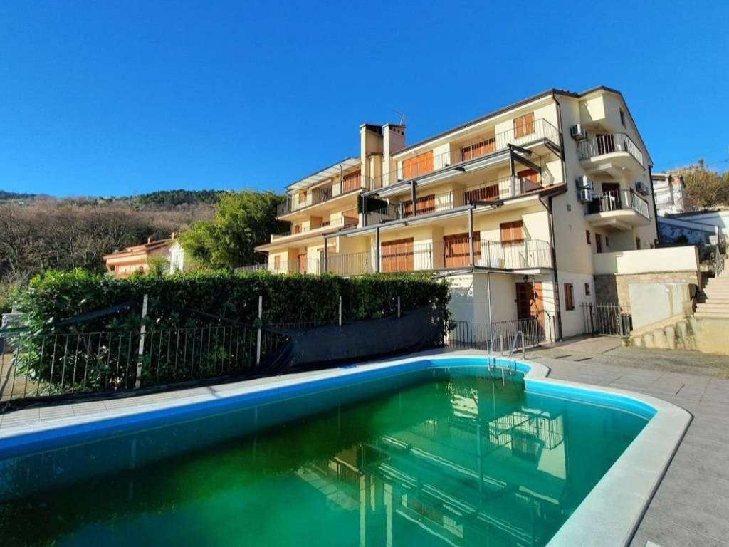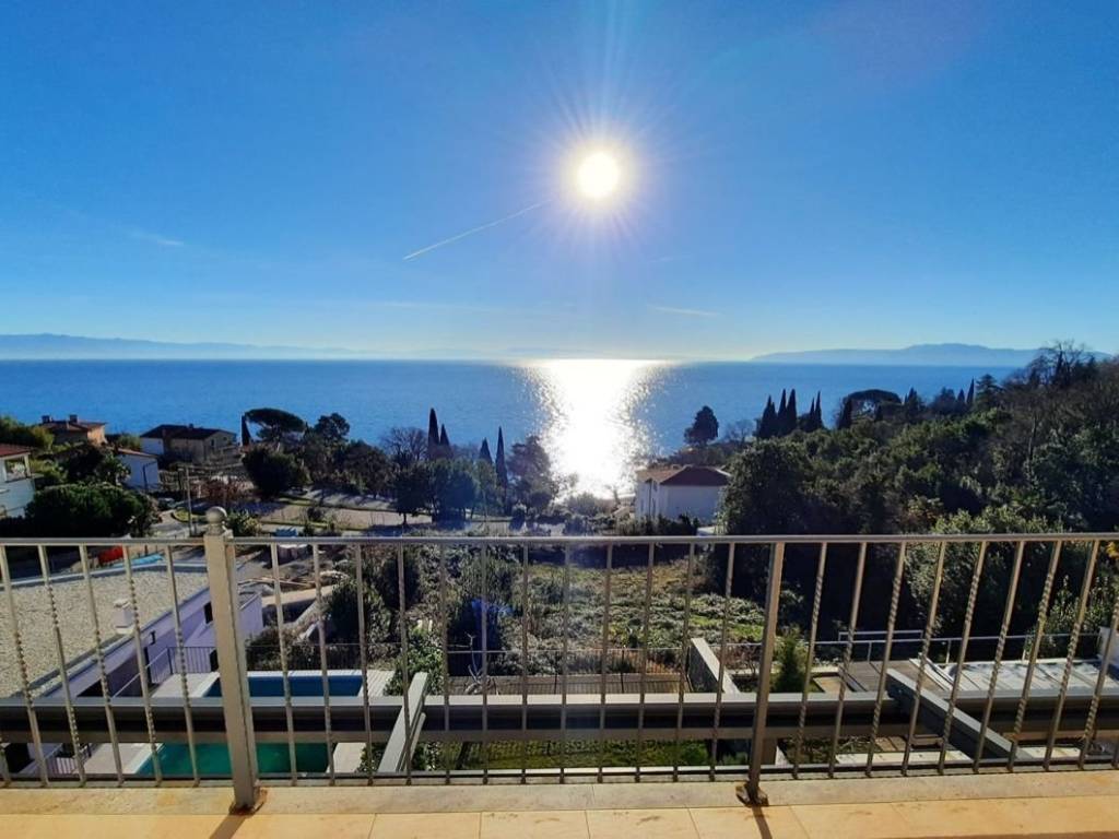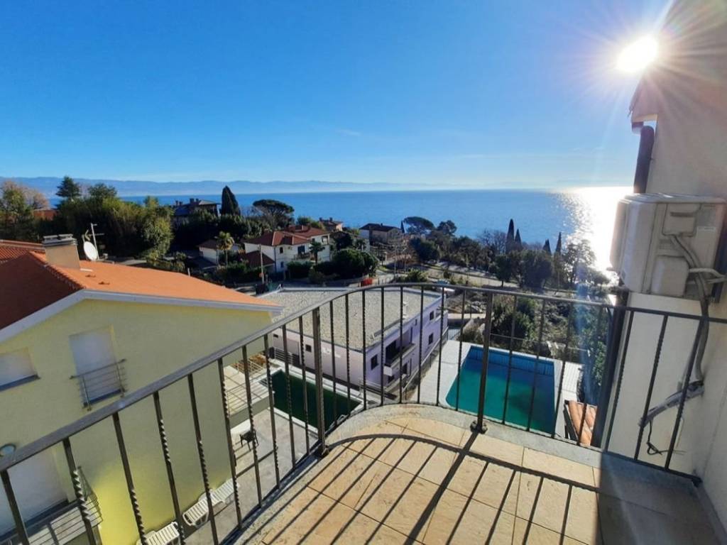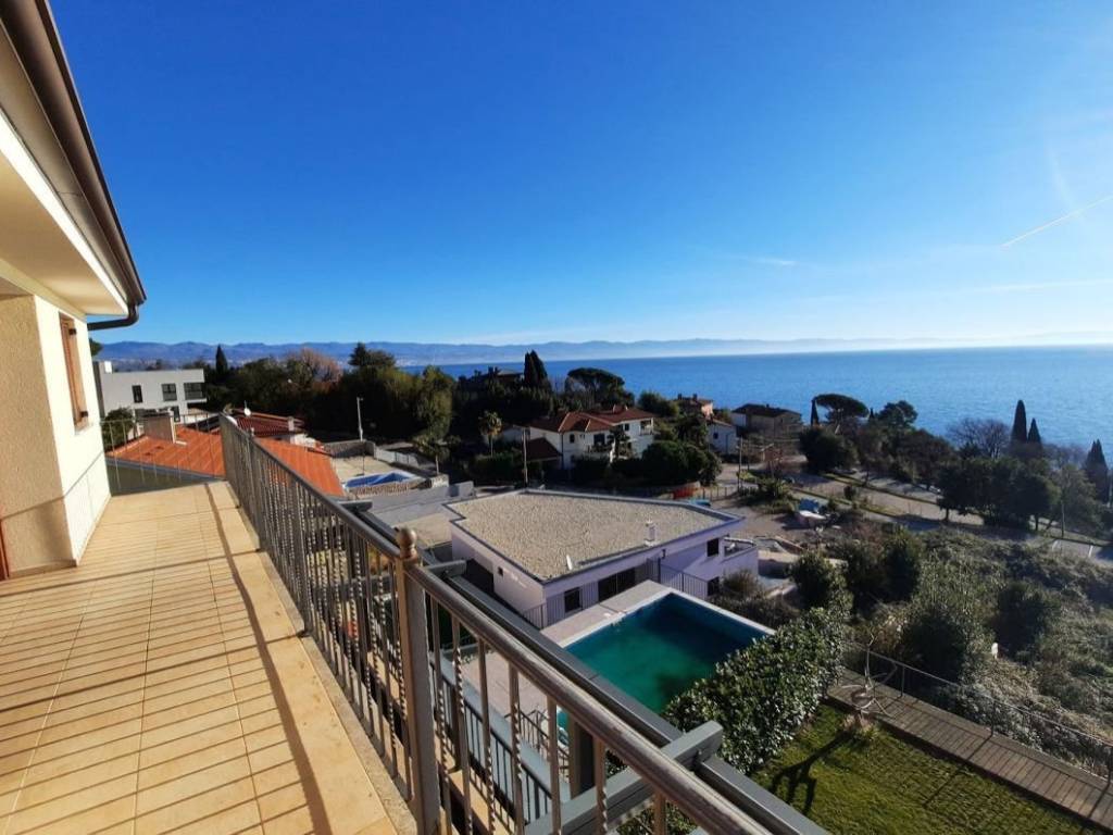 Opatija, Lovran, prodaja atraktivnog apartmana površine 130 m2, s bazenom i panoramskim pogledom na more, 200 m od plaže. Apartman se sastoji od dnevne sobe, kuhinje, blagovaone, tri spavaće sobe, kupaonice, toaleta, spremišta, ostave, balkona i terase. Kvalitetna gradnja i oprema, klimatizacija, dva parkirna mjesta.