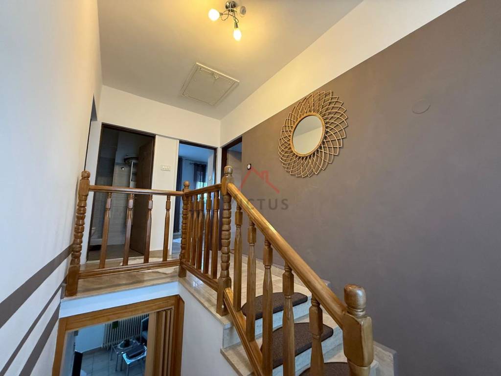 The house is fully furnished and equipped for stay during the tourist season as well as throughout the year. The house consists of a ground floor with an entrance area, hallway, bathroom, living room with a fireplace, and kitchen with dining area. On the upper floor, there are three bedrooms and a bathroom. Two rooms share a terrace with a sea view, while one room has a lake view. The fenced yard includes a covered social area, stone fireplace, swimming pool, sunbathing area, and a separate house fully equipped with a kitchen and dining area.