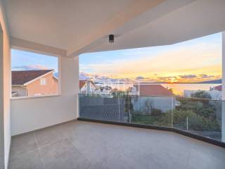 Brodarica, new building, 150m from the sea, penthouse with a total of 112.39m2 of usable area. It is located on the 2nd floor of a residential building that has a total of three floors with a total of 5 residential units, and is oriented to the southeast. The apartment of 109.99 m2 consists of a hallway, entrance hall, kitchen, dining room and living room as a whole, two terraces of 10.45 m2 and 11.25 m2 with a view of the sea, 4 bedrooms, 3 bathrooms and a toilet. The apartment has two parking spaces. It is built of high-quality ceramic materials and sanitary ware, air conditioning in the living room, underfloor heating in the bathroom, electric roller blinds, mosquito nets, intercom. The buyer is exempt from paying real estate sales tax.