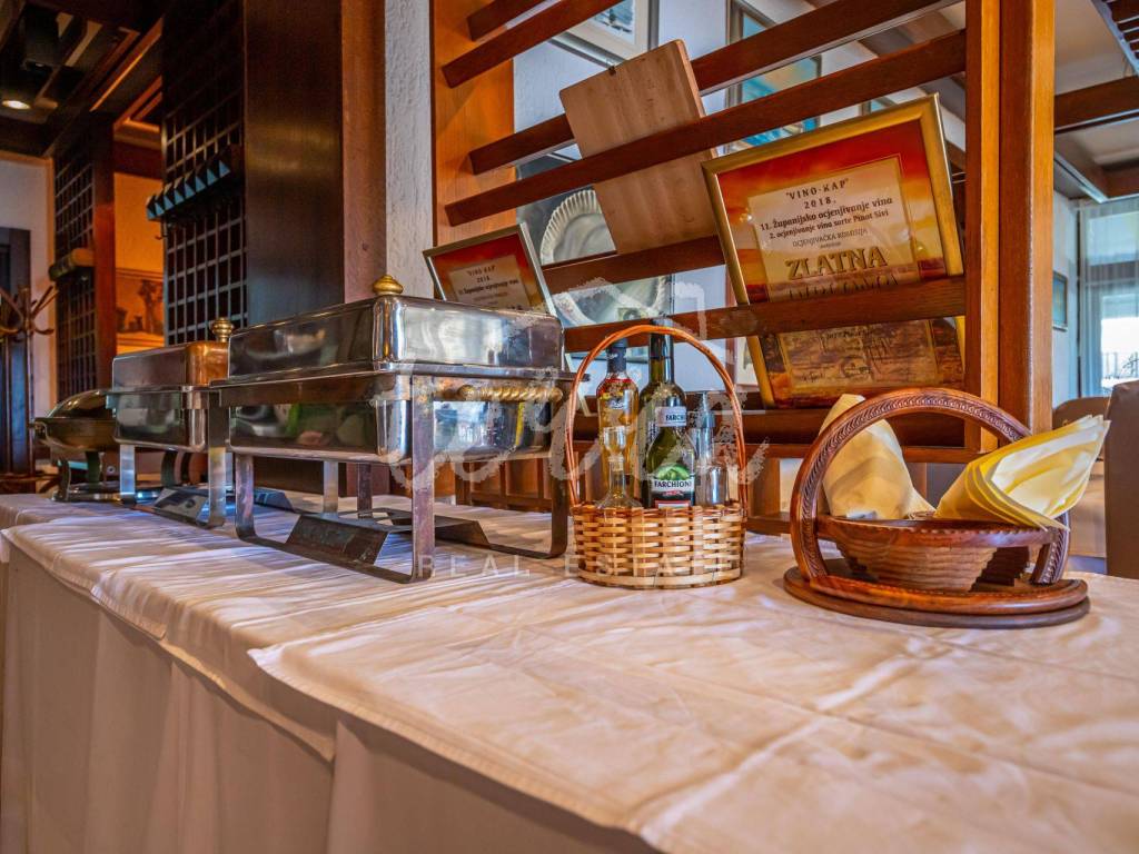Prizemlje poslovnog prostora očarava svojom prostranošću i elegancijom. Ovdje se nalazi prostrani šank, dvije sale za sjedenje, kuhinja opremljena za poslovanje, te ugodan office prostor. Posebno treba istaknuti natkrivene i nenatkrivene terase koje omogućavaju gostima da uživaju u spektakularnom pogledu dok uživaju u hrani ili piću.