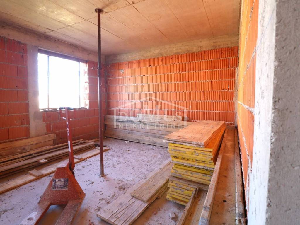 New construction, modern unfurnished apartment with functional layout on the 1st floor in a smaller residential building with a total of 5 residential units. The apartment has 88.39 m2 of usable area, and consists of an entrance hall, 2 bedrooms, one of which has its own bathroom, a hallway, a separate bathroom, a large living room with a kitchen and a dining area as a whole with access to a terrace of 11.14 m2. The apartment will be equipped with air conditioning in the living room, underfloor heating in the bathroom and kitchen, PVC joinery with blinds and mosquito nets, safety entrance door. The apartment has one outdoor parking space. Apartment will be finished and ready to move in during summer 2025. The building is 900m from the sea and 1200m from the town center. There is the possibility of buying a garage parking space on the ground floor for €35,000.
