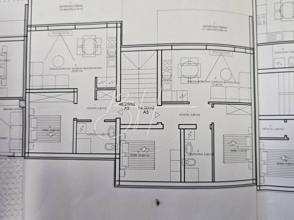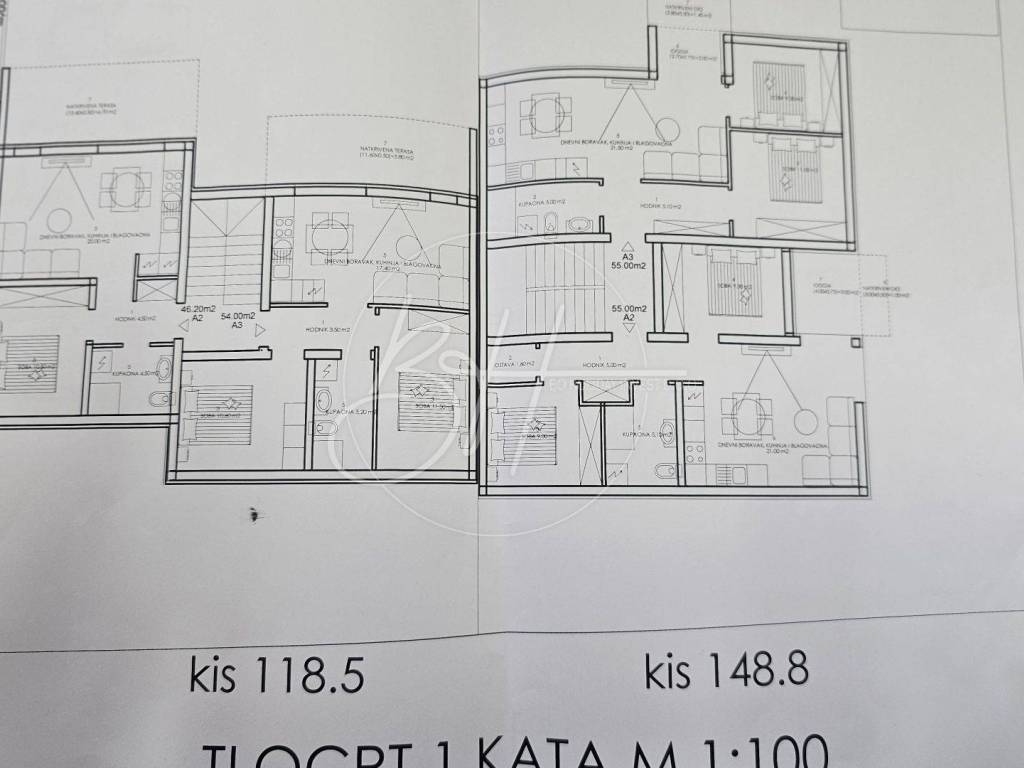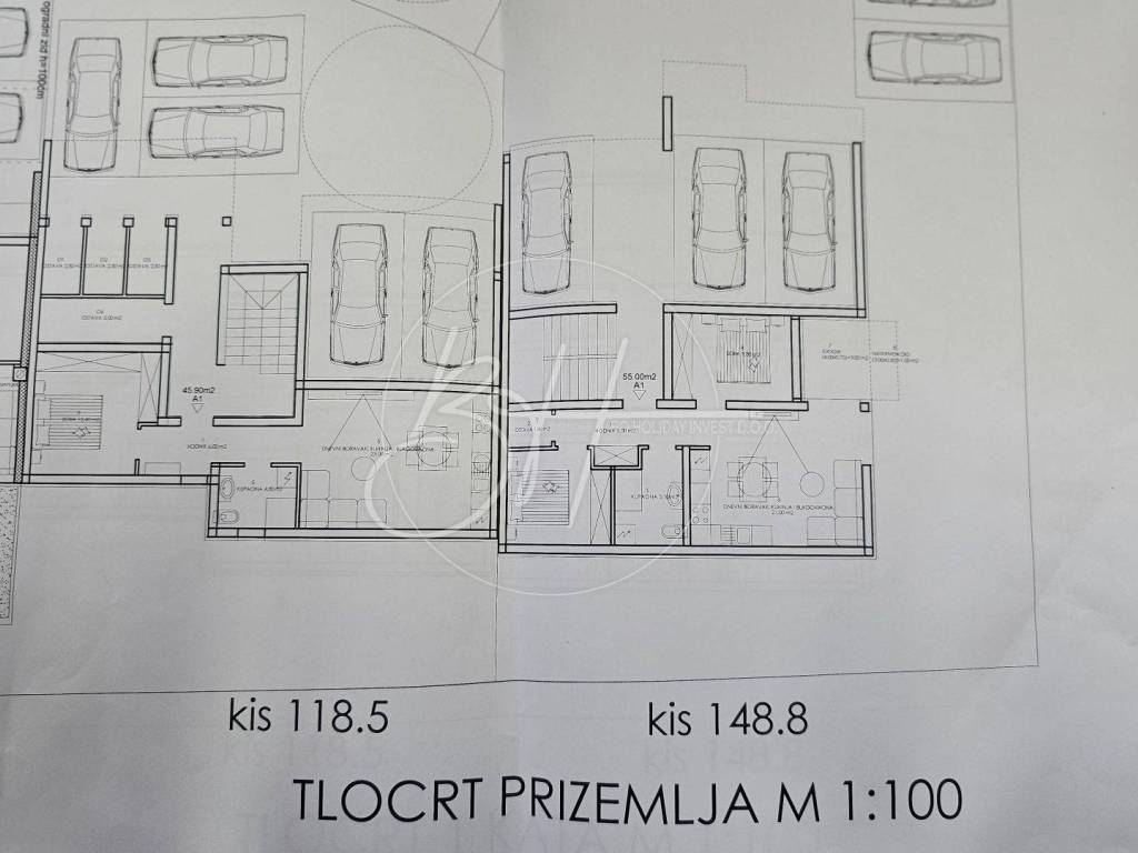 - Dva stana od 55 m², svaki s parkingom i spremištem 2,5 m²