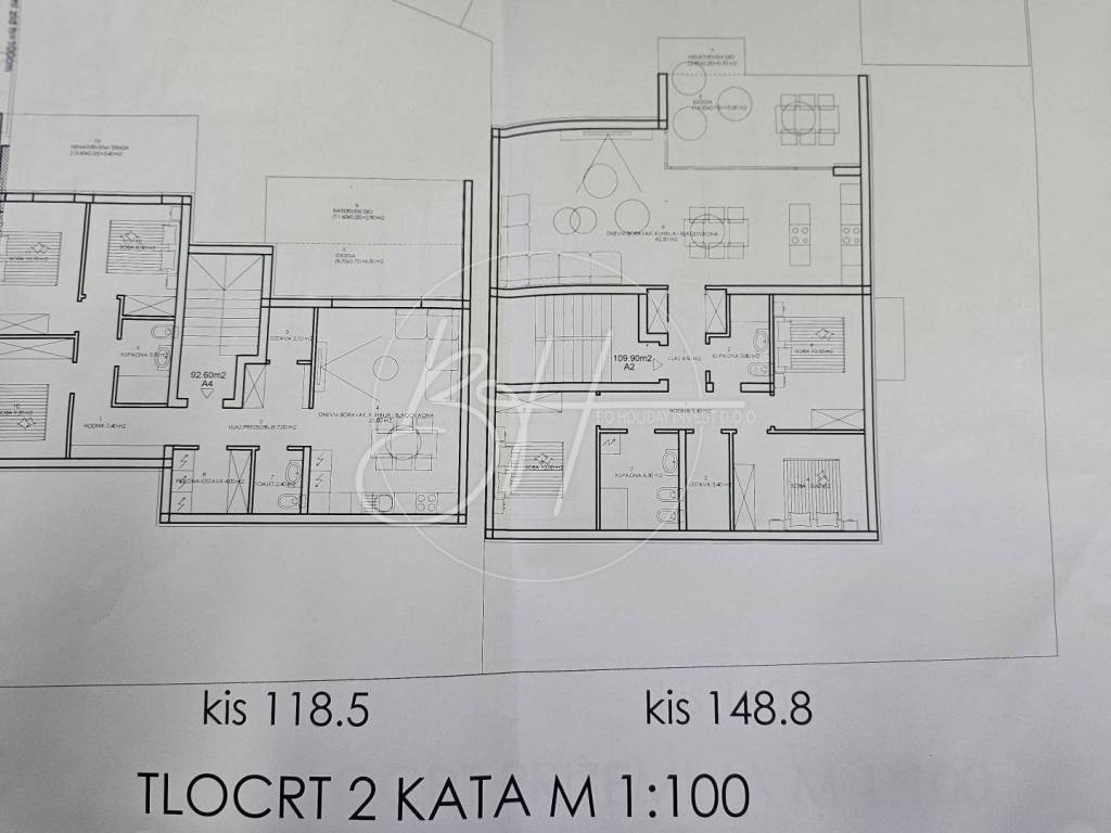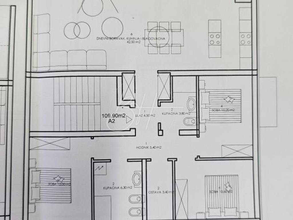 - Stan 110 m² s dva parking mjesta (ukupno 6 m²) i spremištem 2,5 m²