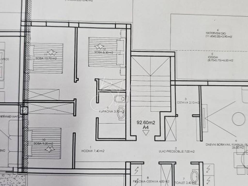 - Stan 93 m² s dva parking mjesta (ukupno 6 m²) i spremištem 2,5 m²