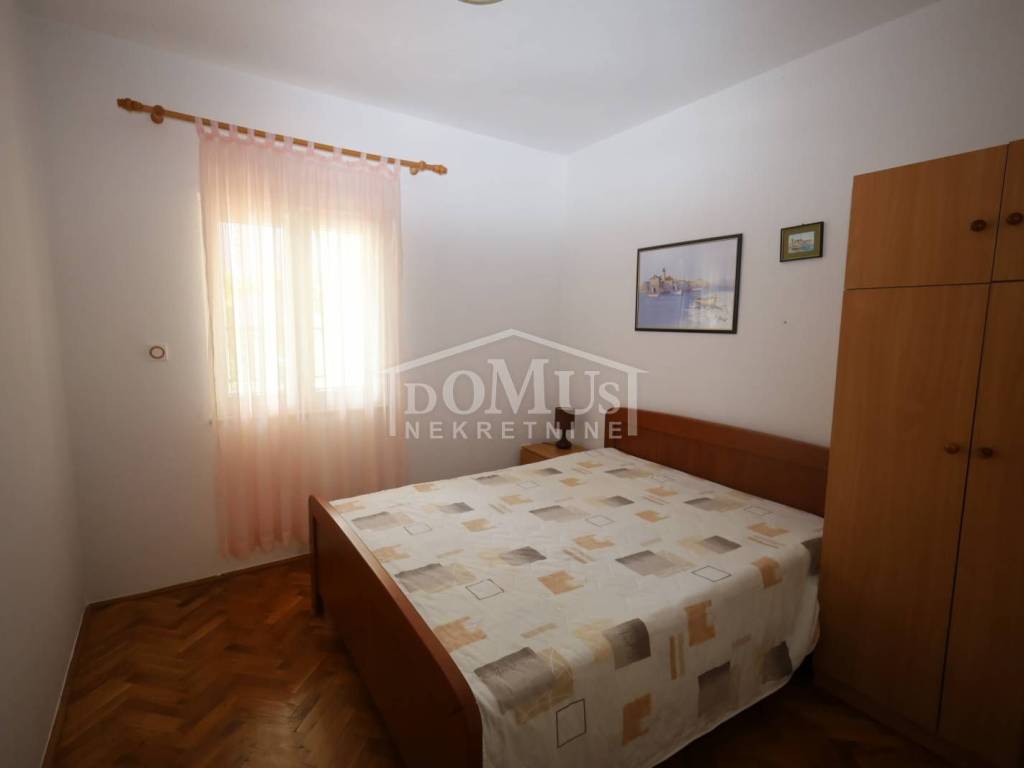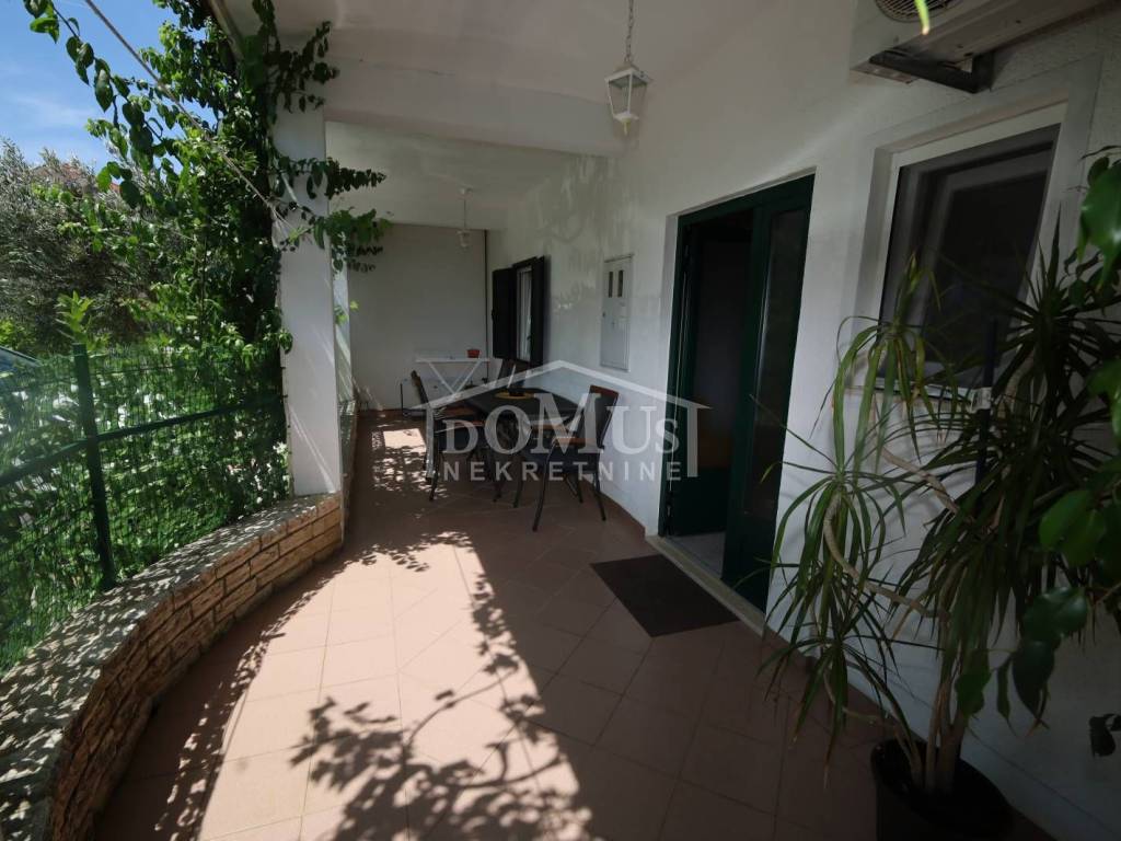 Vodice in a quiet location, only 400m from the sea, is a comfortable, beautifully decorated three-room apartment of 68.25m2 located on the ground floor of a residential building. The apartment consists of a living room with a kitchen and dining area with access to the terrace, three bedrooms and a bathroom. The apartment is air-conditioned and furnished, included in the price of the property. The apartment also has two parking spaces in front of the house. The distance from the town center is 900m