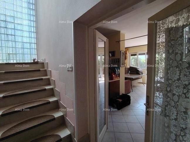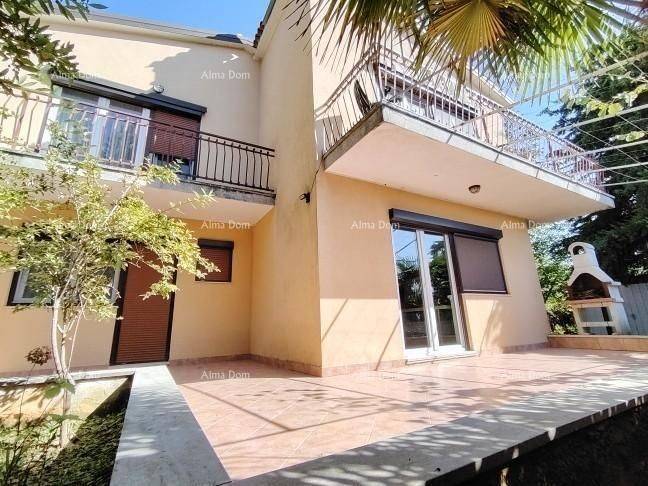 We are selling a detached family house with a large fenced yard in a quiet place, first row to the sea with a view!The house was built by the family about 20 years ago and is in a very well-preserved condition.The roof was done anew 10 years ago with insulation, and PVC windows were installed 2 years ago.The house of 140 m2 on the ground floor consists ofhall with space where I could make a nice wardrobe. To the left of the entrance is the door to the garage, to the right is the kitchen, living room, bathroom and bedroom with wardrobe. From the living room and the bedroom there is access to a sunny terrace, all surrounded by tall hedges that provide privacy.There is a stone grill on the terrace next to the house.From the ground floor, the internal stairs lead to the first floor, where there is another separate kitchen, another living room with access to a very sunny terrace with an unobstructed view of the sea. There are also 2 more bedrooms, each with access to other terraces, and in the hallway there is a door with access to the fourth spacious terrace of 40 m2, which is located on the roof of the garage next to the house.There is 1 air conditioner in the house on the 1st floor right next to the stairs.The road to the car house towards the garage is paved with cobblestones, and the rest is all green, covered with thick, neatly mowed grass and surrounded by Mediterranean bushes that serve as a hedge.The house will amaze you with its contents and preservation, but the best thing about it is its location and distance of 100 m from the beach, as well as an open view of the sea.For all questions and a viewing appointment, feel free to contact us at:Azra+385 91 611 5706+385 98 420 885azra@almadominvest.com