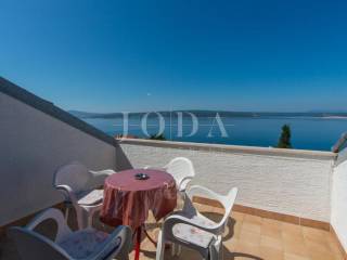 The ground floor includes a 40 m garage converted into a professional laundry room, a storage area, a studio apartment with a private yard and covered terrace, and two additional apartments with access to a shared terrace. The outdoor area features a swimming pool measuring 8.5 4 m, complete with a technical room and an additional storage area. The first floor comprises two apartments sharing a spacious 60 m connecting terrace and a 35 m common terrace, while the second floor offers two more apartments, one featuring a gallery and a terrace with open sea views. The high attic contains a comfortable one-bedroom apartment with its own terrace.
