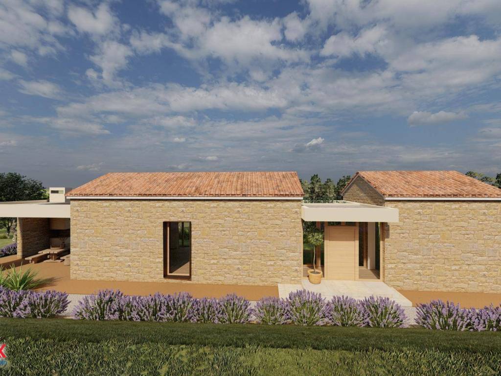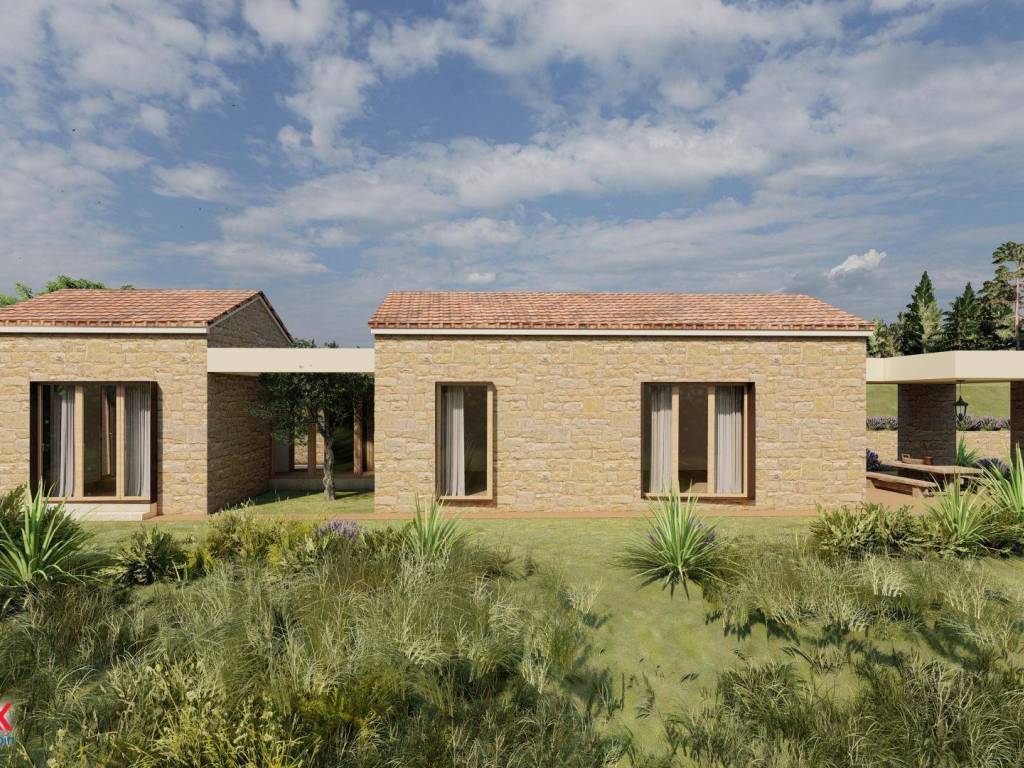 Za predmetno zemljište izrađen je projekt koji predviđa izgradnju moderne prizemnice površine 80 m². Tlocrt uključuje prostrani dnevni boravak povezan s kuhinjom i blagovaonicom, hodnik, dvije udobne spavaće sobe te elegantnu kupaonicu. Posebna vrijednost projekta je natkrivena terasa idealna za ljetna druženja, objedovanje na otvorenom i opuštanje uz prirodnu hladovinu.