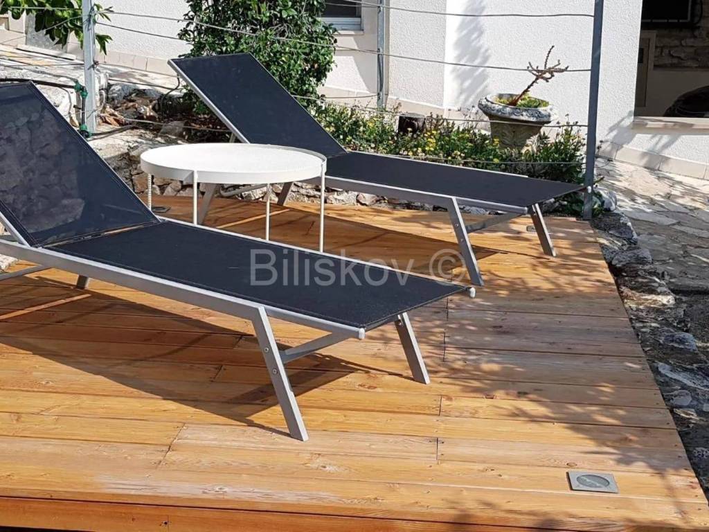 Velika terasa s pogledom na more, Vinišće i Čiovo, te Marinski zaljev i Marinu.