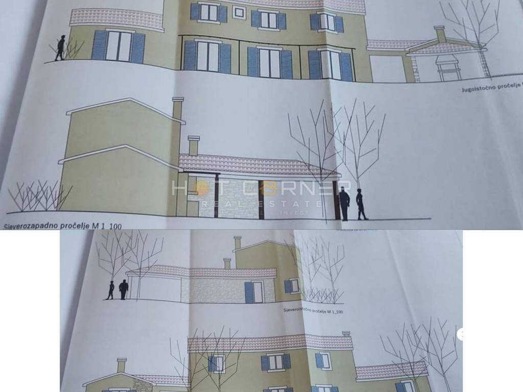 Izgrađena je obiteljska kuća površine 69 m2 u kojoj vlasnik trenutno boravi. Projekt i građevinska dozvola po potrebi se mogu izmjeniti unutar 300 m2 stambenih i 700 m2 gospodarskih kvadrata.