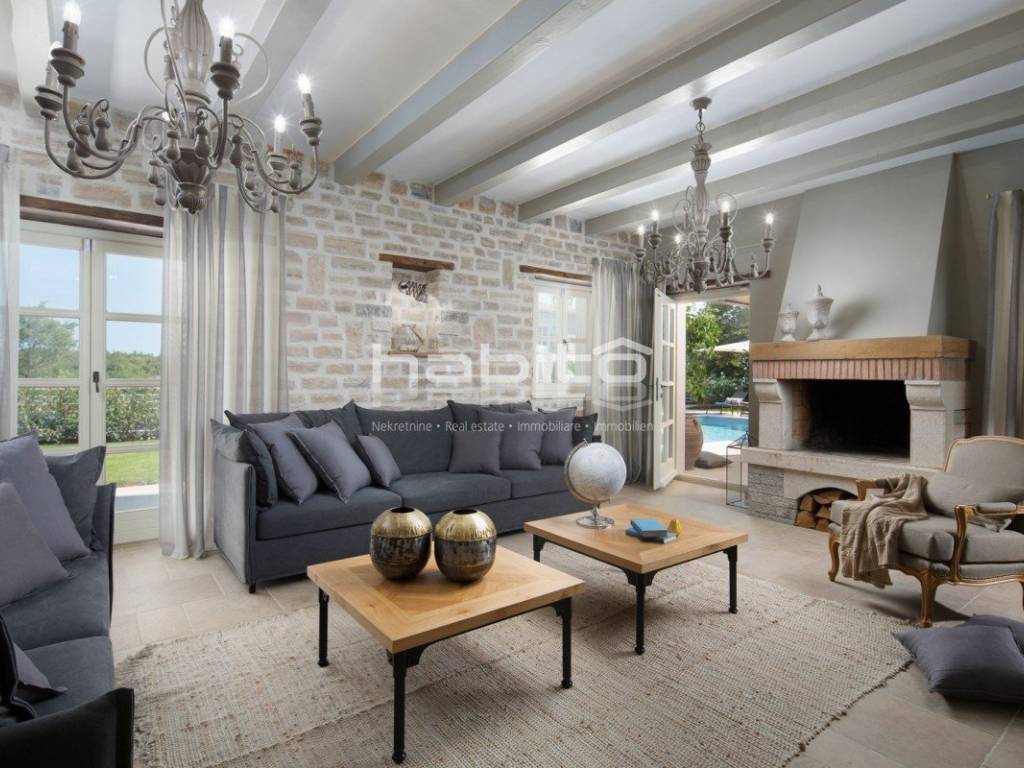 This beautiful villa, along with Villa Nevia, Villa Elli and Villa Zoe is set within a luxury project with 5600 m2 of private land offering to the guests of these 4 villas an organic garden with seasonal vegetables, open-air fitness, 2 tennis courts, 2 bocce courts, as well as courts for handball, football, basketball and volleyball. For a true Istrian feel there are also 3 boskarins, white grey long horned Istrian cattle, a symbol of the region. Elegant, sophisticated and superbly located amidst picturesque Istrian countryside yet still within easy reach of sunny beaches and vivid seaside resorts, Villa Elena offers luxurious accommodation in which you can instantly relax and savour every minute of your holiday. The ground floor is dedicated entirely to sumptuous living, with a wonderful long room divided by an archway into living and dining/cooking areas with French doors bringing the abundance of warm Istrian light inside. Exposed stonework, beamed ceilings and a beautiful open fireplace create a warm and pleasant atmosphere, while a mix of modern and vintage furnishings and exquisite fittings provide you with high quality comforts. Three bedrooms are distributed over the upper floor, while the fourth one opens directly to the welcoming private pool area, which presents a fantastic place to relax and unwind, including a lovely, covered, authentic barbeque with a dining table that makes a wonderful retreat from the sun or the perfect place to enjoy your outdoor meals. Youll never be short of things to do and places to visit, making this beautiful villa a great base for your Istrian getaway.