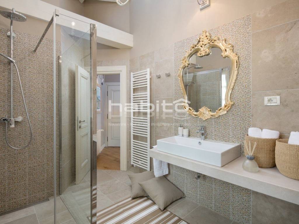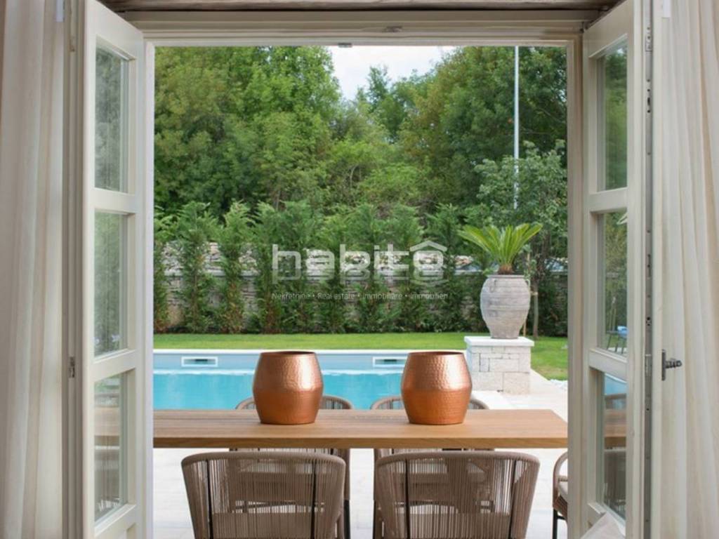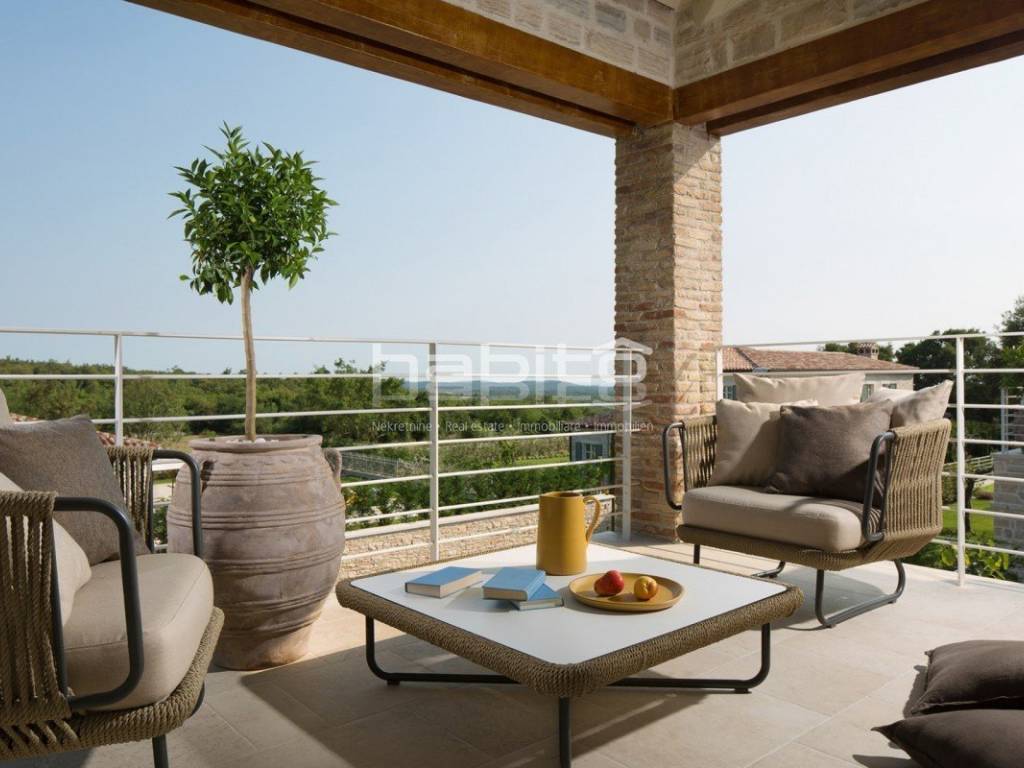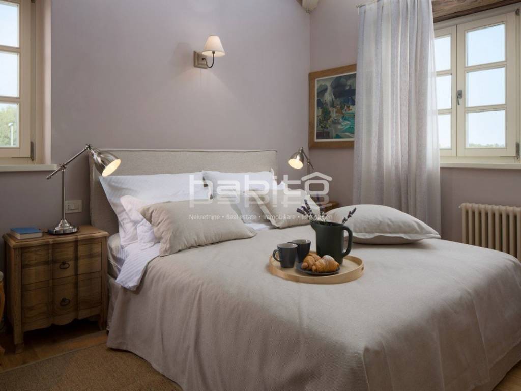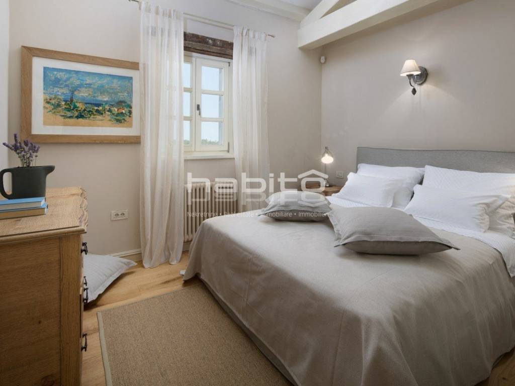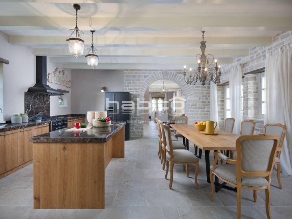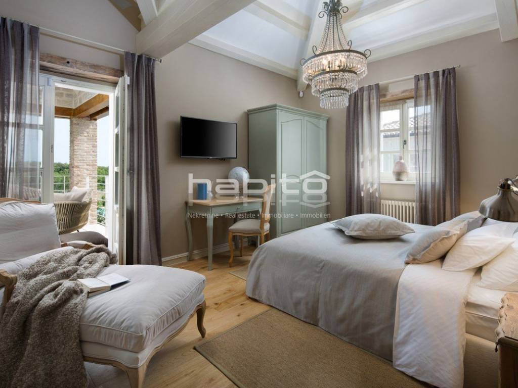 Villa Zoe is richly equipped and furnished with rustic furniture in the style of a castle, offer a very high level of comfort. The ground floor is dedicated entirely to sumptuous living, with a wonderful long room divided by an archway into living and dining/cooking areas with French doors bringing the abundance of warm Istrian light inside. Exposed stonework, beamed ceilings and a beautiful open fireplace create a warm and pleasant atmosphere, while a mix of modern and vintage furnishings and exquisite fittings provide you with high quality comforts. The four stylishly designed bedrooms are distributed over the upper floor, while the ground floor opens directly to the welcoming private pool area, which presents a fantastic place to relax and unwind, including a lovely, covered, authentic barbeque with a dining table that makes a wonderful retreat from the sun or the perfect place to enjoy your outdoor meals.