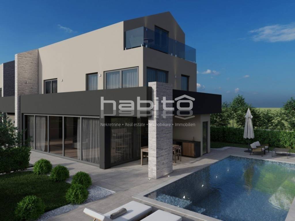 This high-quality villa is for sale in a quiet location, only 1 km from the center of Porec and 500 m from the sea. The house consists of a ground floor and two floors and contains a living room, kitchen, dining room, laundry/storage room on the ground floor of the house. On the first floor there are a total of 2 bedrooms with their own bathrooms and balconies with a view of the sea. On the third floor, i.e. high attic, there is a third, master bedroom with a bathroom and a spacious terrace with a beautiful panoramic view of the sea.