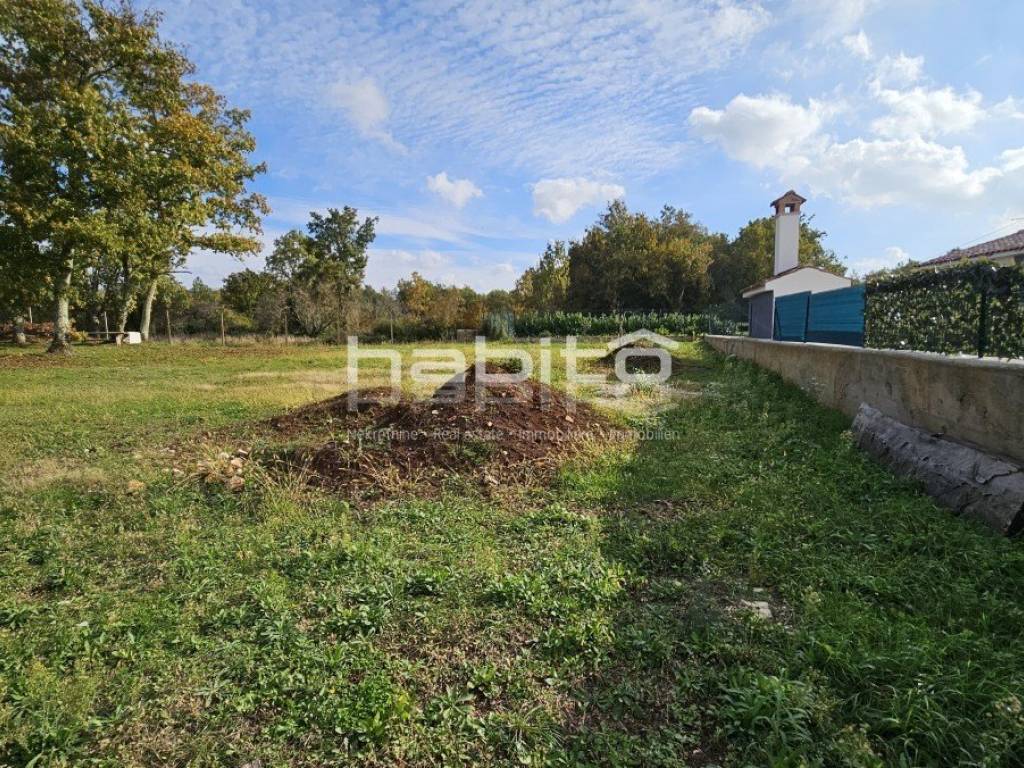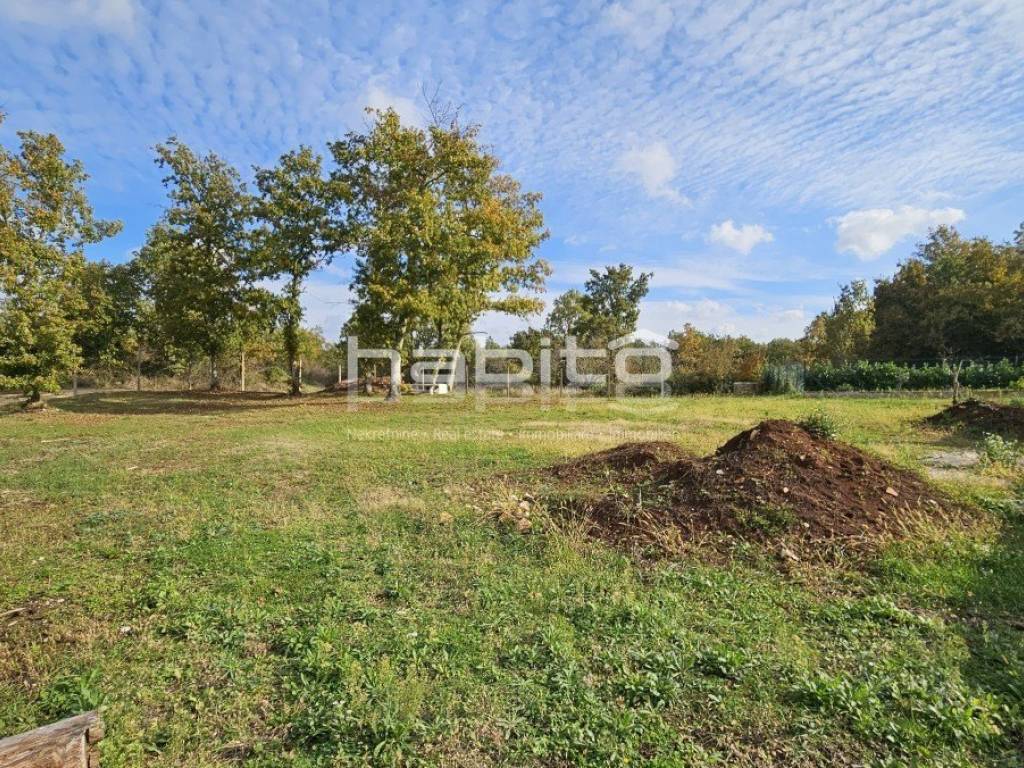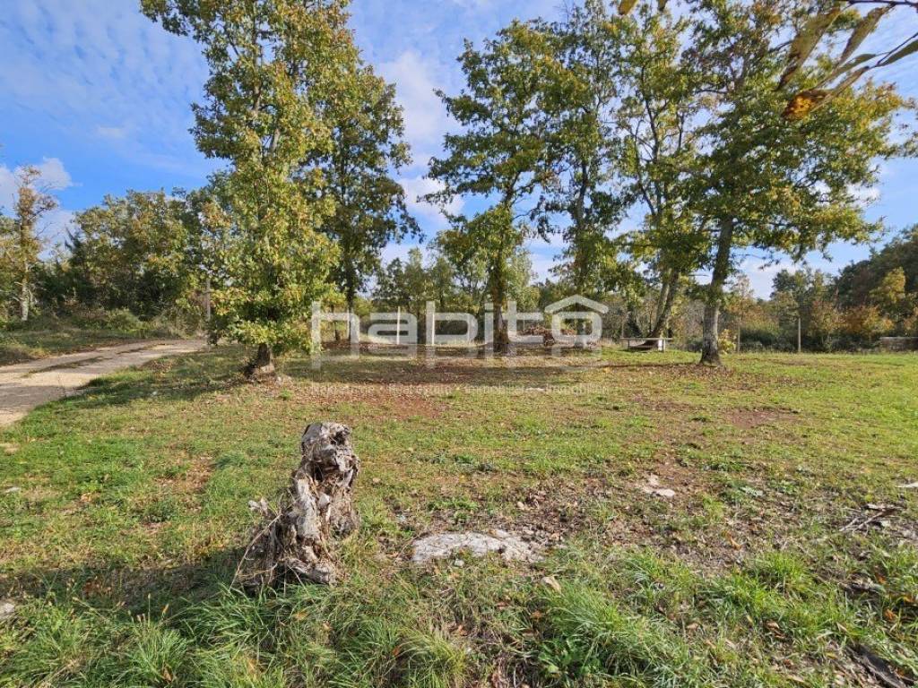 Građevisnko zemljište, stambene namjene od ca 850 m2 mješteno je na rubu malog sela svega 5 km od Višnjana i 17 km od mora, grada Poreča.