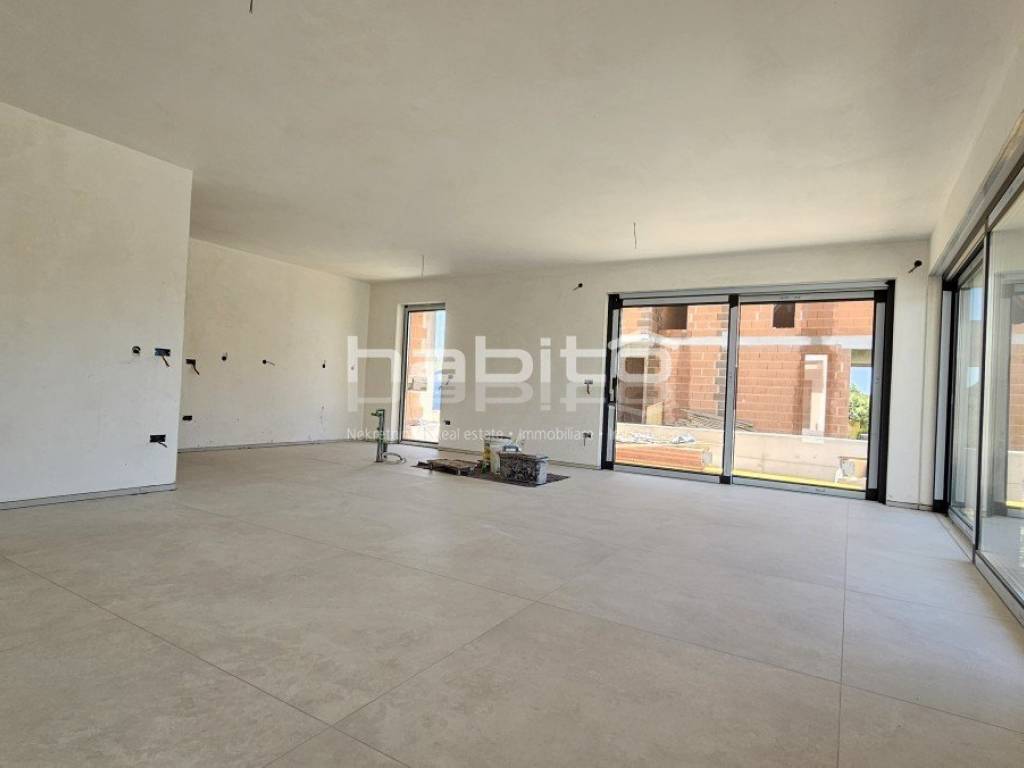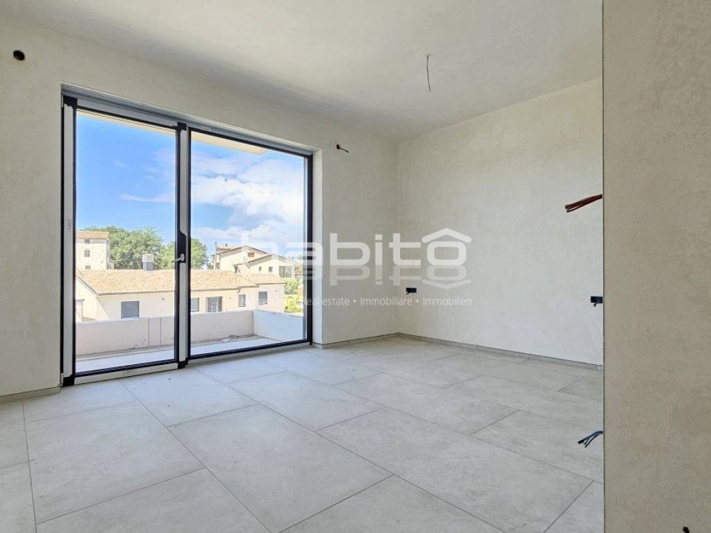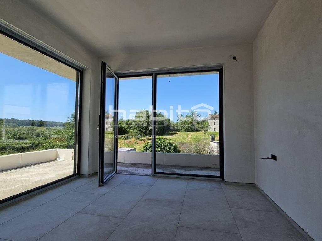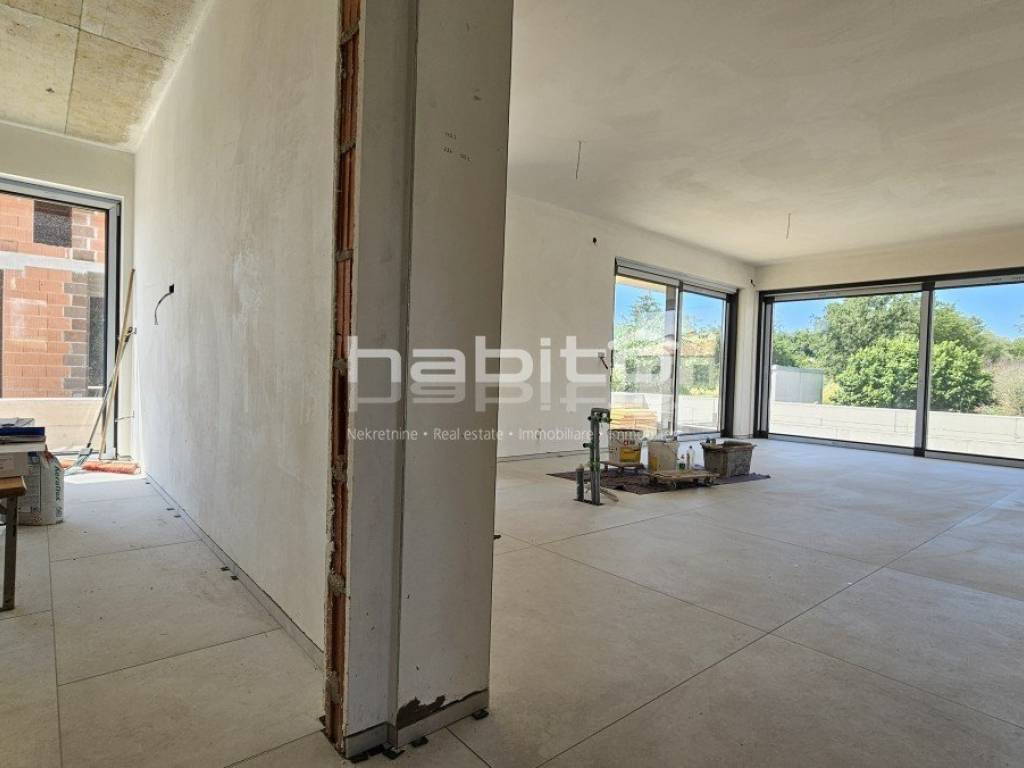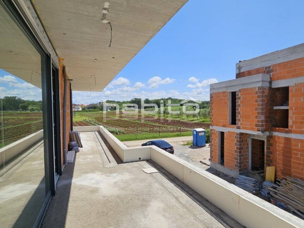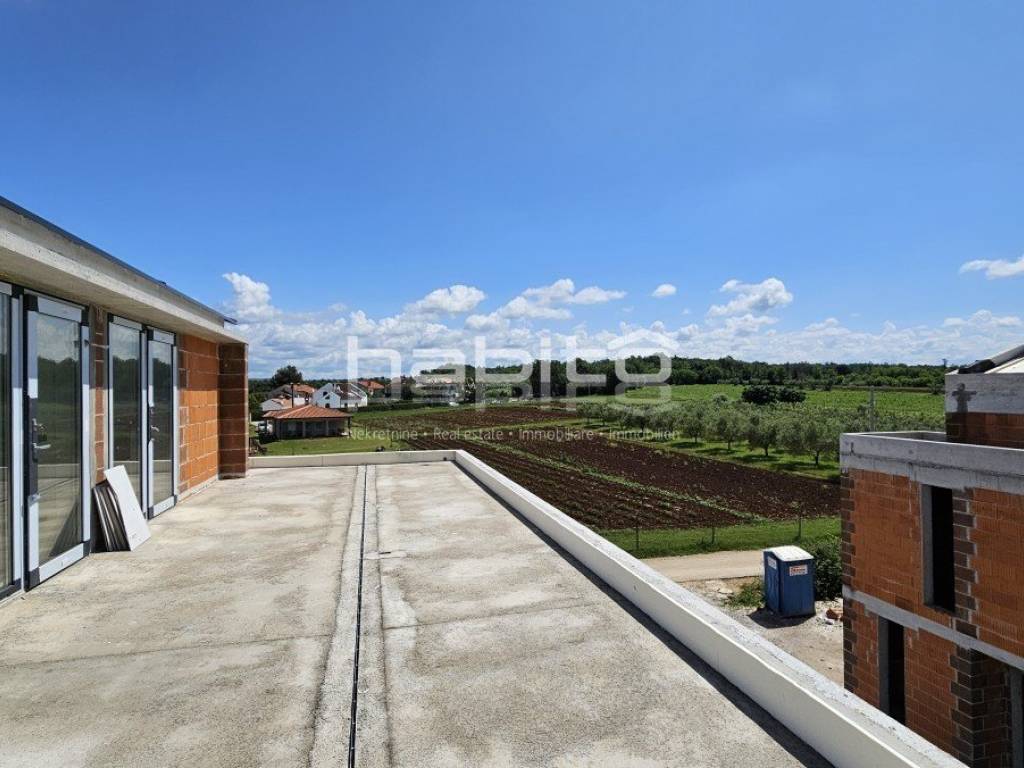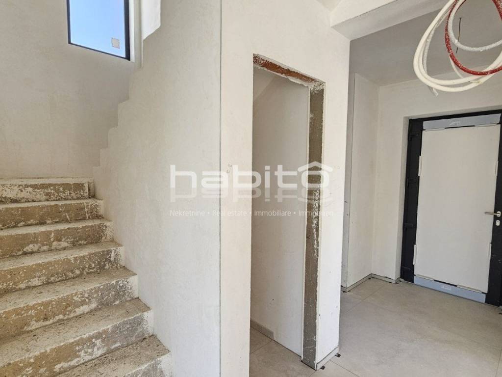 This luxury villa with pool is located in a quiet neighborhood, just 3 km from the sea and the city of Porec. The villa is under construction and has an area of 233 square meters. It consists of a ground floor, first floor, and attic.