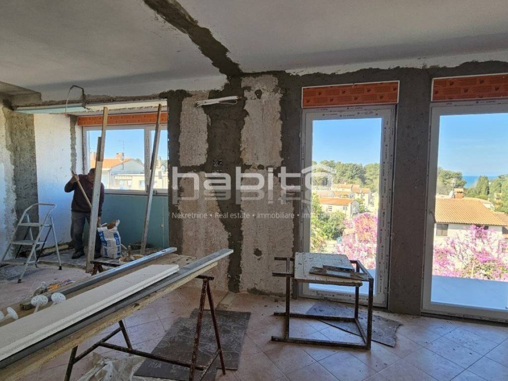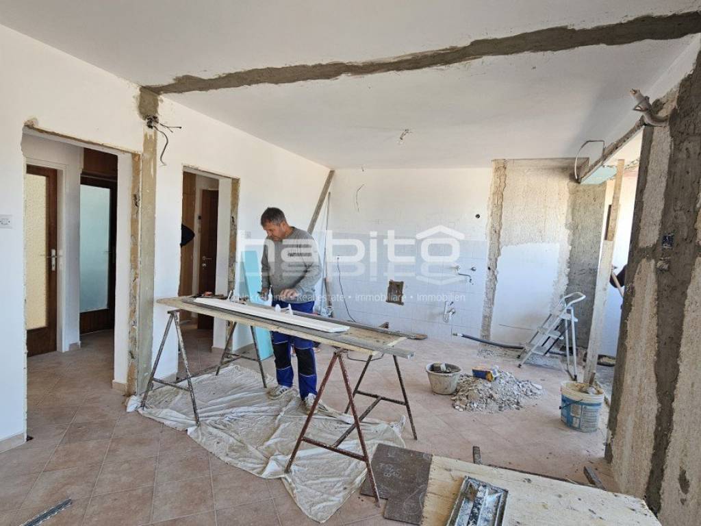 In the final phase of renovation, the buyer can choose the option between one or two bedrooms. Currently, one bedroom is formed and an open space is left for the other.