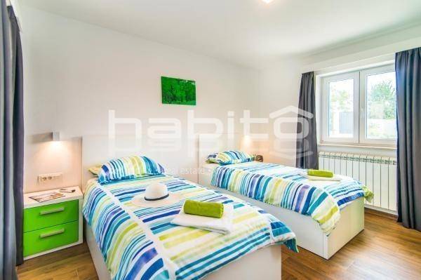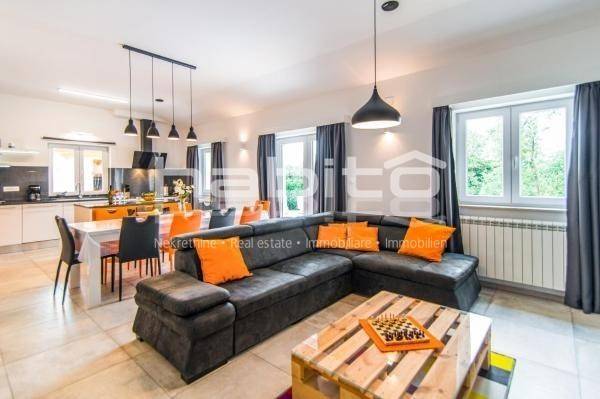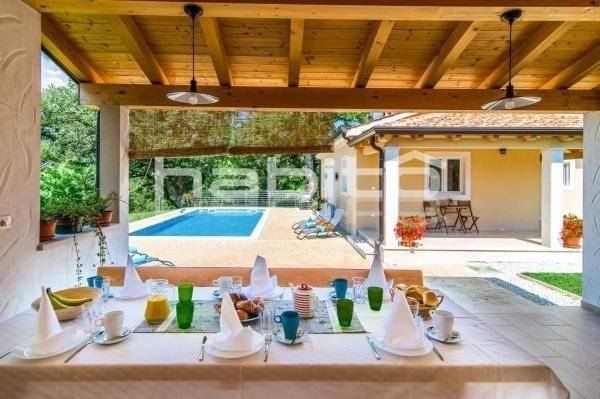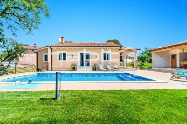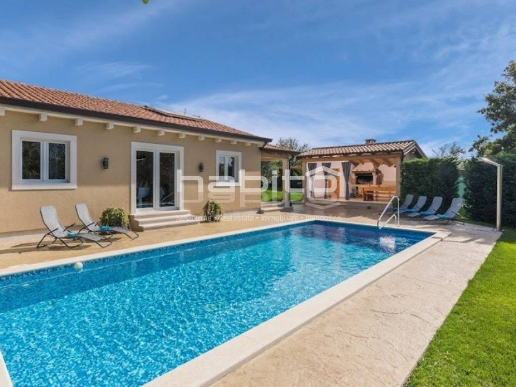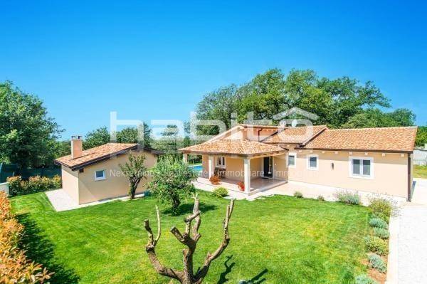 For sale: a beautiful, modern single-story house with a pool and a spacious 1023 m garden, ideal for a peaceful family life or as a profitable investment in tourist rentals. The house consists of 140 m of living space, a 30 m summer kitchen, and a 25 m basement. The ground floor features a spacious living room with a fireplace, a kitchen with a dining area, three bedrooms (one with an en-suite bathroom), a family bathroom, a separate toilet, a storage room, and access to a sunbathing area with a 36 m pool. The basement offers additional space that can be adapted to your needs, such as a wine cellar or a tavern. The house is equipped with air conditioning for heating and cooling, and it is also possible to heat it with wood.