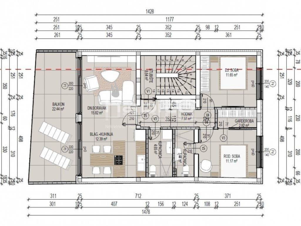 This beautiful first-floor apartment offers 69.31 m of living space, complemented by a spacious 22.44 m balcony.