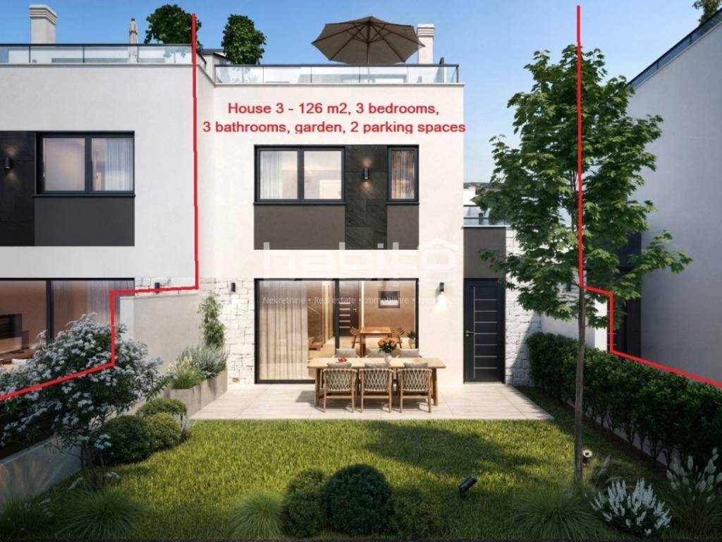 The 126 m2 house consists of a kitchen, dining room, living room, terrace and guest toilet on the ground floor. On the first and second floors there are 3 bedrooms with private bathrooms and balconies.