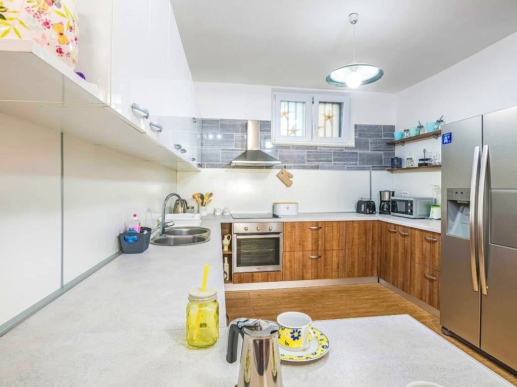 A particularly impressive feature of the house is the rooftop terrace, offering panoramic sea views. This upper level includes a jacuzzi and a relaxation zone, perfect for evening gatherings or peaceful moments of rest. The interior of the house is well-maintained and fully equipped with all necessary household appliances and technical devices, and it comes with high-quality and tastefully selected furniture.
