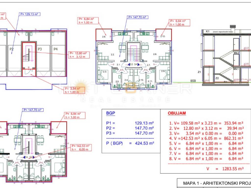 Prodaje se lijepa građevinska parcela na Paduljskom putu na Velom vrhu u Puli površine 435m2. Parcela je ravna i pravilnih dimenzija, te je u cijenu uključen udio u putu od oko 70m2. Infrastruktura struja, vode i kanalizacije nalaze se ispred zemljišta. Glavni projekt je dovršen i predan zahtjev za izdavanje građevinske dozvole. Prema projektu zgrada bi imala 4 stana, svaki površine oko 55m2 i 4 garaže, svaka površine oko 24m2. Bruto stambena površina je 425m2, a predviđena zgrada je samostojeća. Do parcele je javna asflatirana cesta.