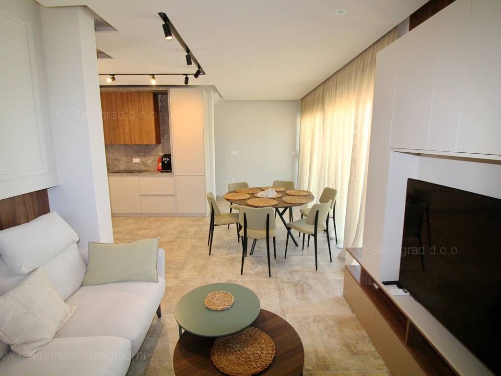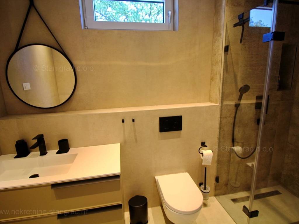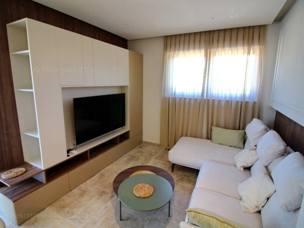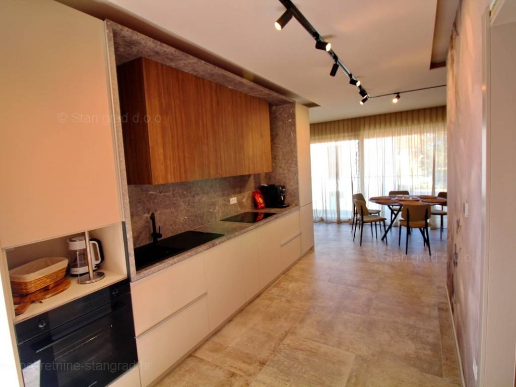 The agency Stan Grad Immobilien is selling an exceptional apartment built according to a modern project on the attractive northern Adriatic area, the island of Krk. The property in question is beautifully integrated into a beautifully planned area of ​​a nice Mediterranean settlement not far from the center of Njivice and all the necessary facilities. According to the type of property, this is a medium-sized two-story apartment. In a very good and quality building, the apartment is located on the ground floor. The apartment covers a total area of ​​approximately 112 m2. It consists on the ground floor of a room, bathroom, storage room, stairs to the floor where there are 2 bedrooms, kitchen, living room, bathroom and stairs to the roof terrace with swimming pool. The property with a preserved interior is equipped with a set of very good technical equipment and quality pieces of furniture. It is certainly worth noting that the property described has an exceptionally well-decorated and well-kept yard. The owner of the apartment will have one parking space at his disposal. In addition to the mentioned features, this apartment is very well oriented and offers a beautiful view of the sea and the coast. This apartment is owned by a natural person and in the name of its transfer, the buyer is obliged to pay real estate sales tax in the amount of 3%. The seller of the real estate guarantees proper construction and ownership documentation and a quick transfer of the real estate to the name of the buyer. Our staff will make sure that you feel at home in Kvarner. Visit us on the island of Krk. If you place your trust in us, the Stan Grad Immobilien agency will be happy to help you transfer the ownership rights of this property and the bill for its utility connections and services to your name.