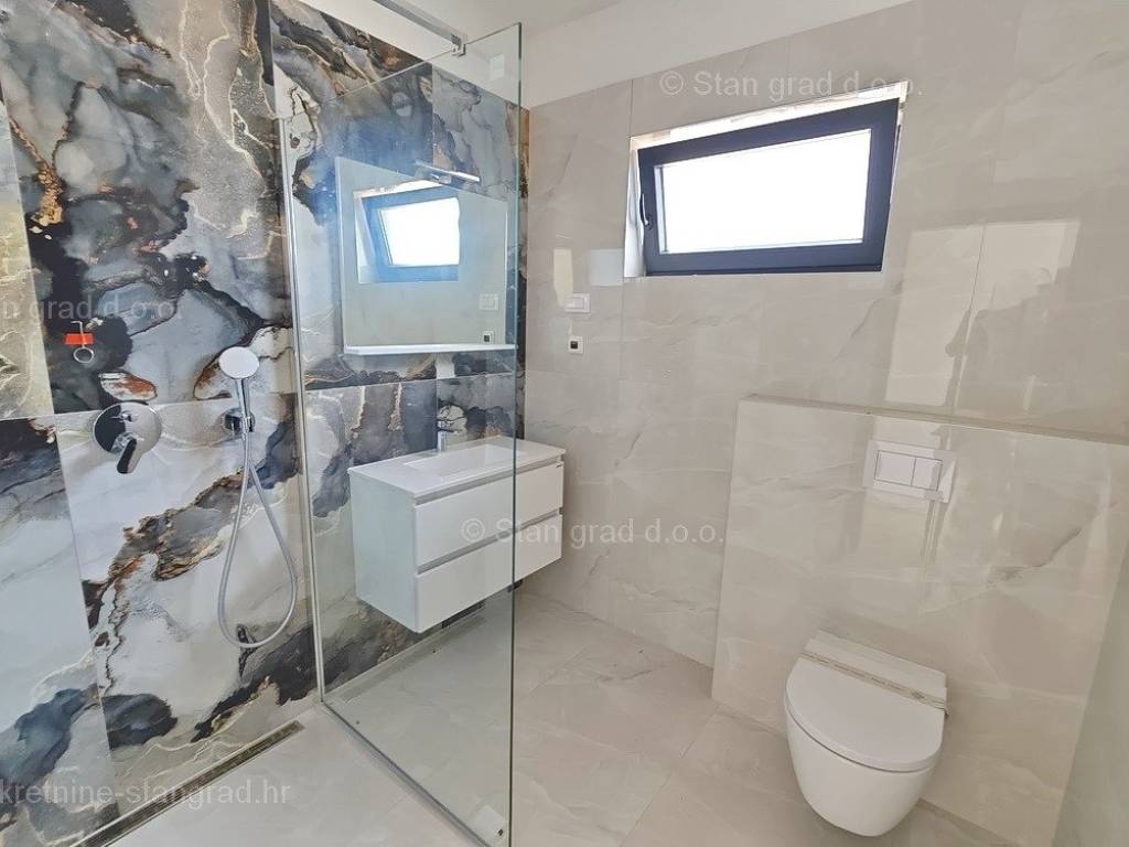 A very valuable and expensively built vacation home on the famous and attractive Adriatic tourist area, the island of Krk, is for sale at our agency in Kvarner. The property is located near the town of Krk, the wider area of the City of Krk, in a location that offers enjoyment in the greenery of nature. Looking structurally, this is a detached house with a large garden and a swimming pool. The extremely attractive building consists of a total of 2 floors. The house occupies a total area of 150 m2. The ground floor of the house consists of an entrance hall, a storage room, a toilet, a kitchen and a dining room, and a spacious living room with access to a covered terrace with a garden and a swimming pool. The first floor of the house is connected by an internal staircase, and there are three bedrooms and three bathrooms on the first floor. The added value of this entire building is given by the garden with a swimming pool and a sunbathing area and a gazebo. Within the covered parking space on the property's grounds, it is possible to comfortably park several vehicles. In addition to all of the above, it is important to say that the house has a good view of the sea and the coast. This real estate is the property of a natural person, so the buyer is obliged to pay sales tax in the amount of 3% when transferring its ownership to his name. The seller of this house guarantees complete and orderly documentation and a simple transfer of the property to the buyer. Visit us on the island of Krk and we will make sure that you feel the satisfaction of all our clients. The sales team of the Stan Grad Immobilien agency will be happy to assist the buyer of this property in transferring ownership of the property to the land register and transferring bills for electricity, water and garbage collection to their name. The planned completion of the works is the end of 2023.