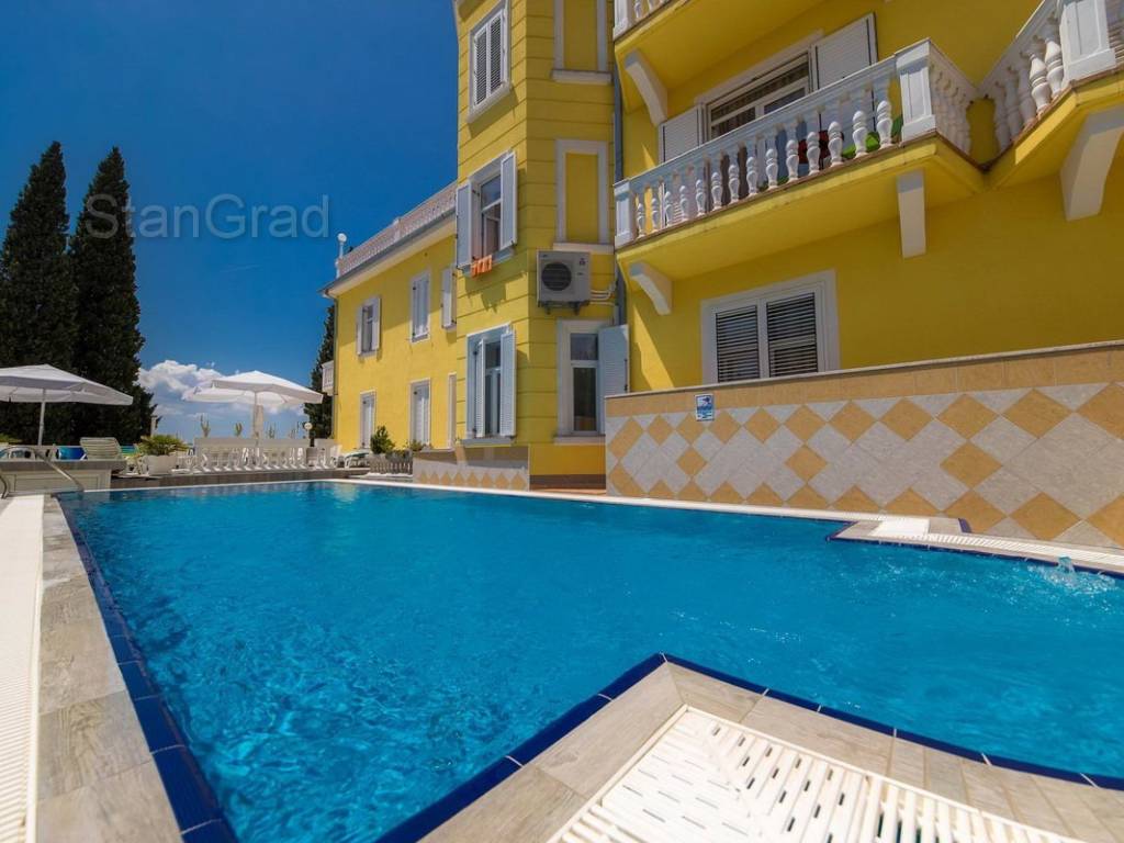 Na samo 50 m od mora a u samom središtu turističkog mjesta, prodaje se uhodani hotel u punom radnom pogonu. Inače, hotel je 2001. godine, od starinske vile stare 120 godina, dogradnjom, rekonstrukcijom i adaptacijom pretvoren u moderan i vrlo ugodan turistički objekt sa svim blagodatima koje pruža sjajna lokacija ovog hotela. Objekt raspolaže sa cca 75 ležaja u 24 sobe, 2 obiteljske sobe, 1 apartman i 1 veliki stan površine 250 m2, lijepo namješten i opremljen restoran, vanjske terase sa prekrasnim pogledom, 17 parking mjesta, sve potrebne prateće gospodarske sadržaje, kotlovnicu za centralno grijanje, skladišta, prostorije za čuvanje hrane, solarne panele za toplu vodu i sl. Popunjenost hotela je vrlo visoka a uz vrlo mala ulaganja je moguće isposlovati i četvrtu zvjezdicu. Jedan od vodećih svjetskih portala HolidayCheck je hotelu za 2019. godinu dodijelio ocjenu 6/6. Što je vrlo bitno, hotel posjeduje potpuno urednu i čistu vlasničku dokumentaciju a što omogućuje novom vlasniku vrlo lagan i brz ulazak u vlasništvo i posjed ove poslovno zanimljive nekretnine. Nije zanemarivo ni to što hotel ima i vlastite već dobro obučene zaposlenike što također olakšava novom vlasniku bezbolnu tranziciju. Sve u svemu, dobra prilika za ozbiljne investitore koji žele nastaviti i unaprijediti turističku djelatnost.