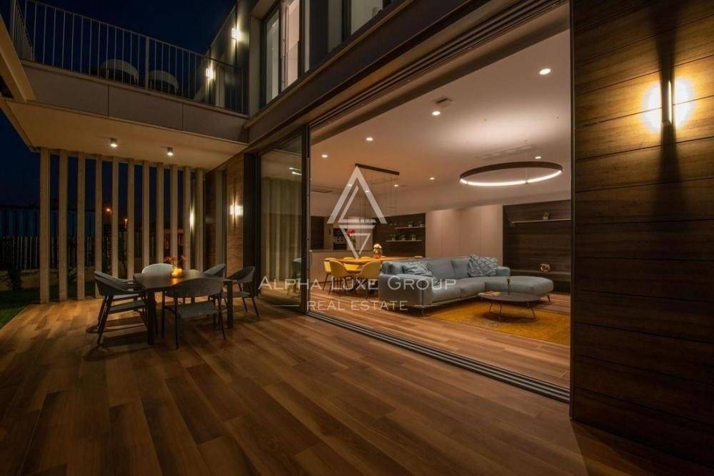 A luxury house for sale in Medulin, only 100 meters from the beach. On the ground floor of the house there is a large apartment with an entrance hall, a bathroom and two bedrooms, each equipped with its own bathroom, a pantry and a spacious kitchen with a dining room and a living room with access to a terrace with a beautiful view and a jacuzzi for relaxation. There is also a boiler room with space for bicycles and a storage room.