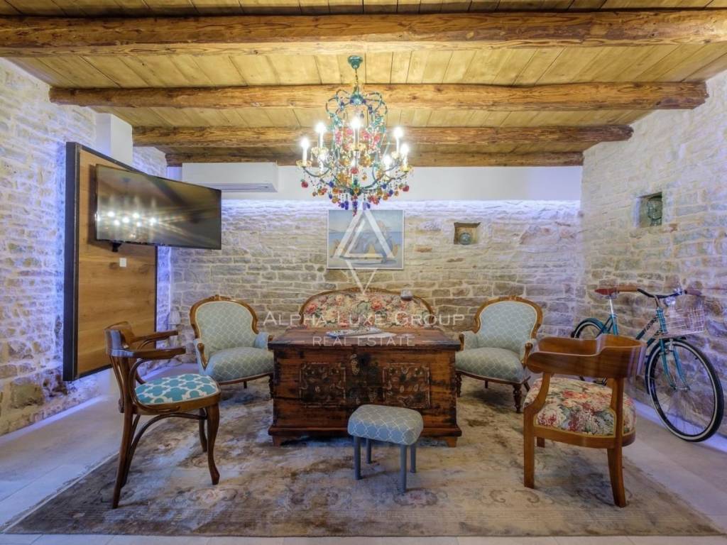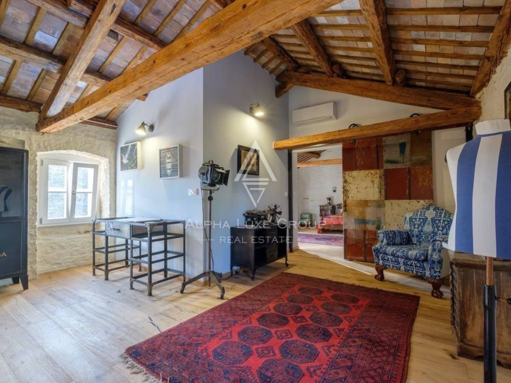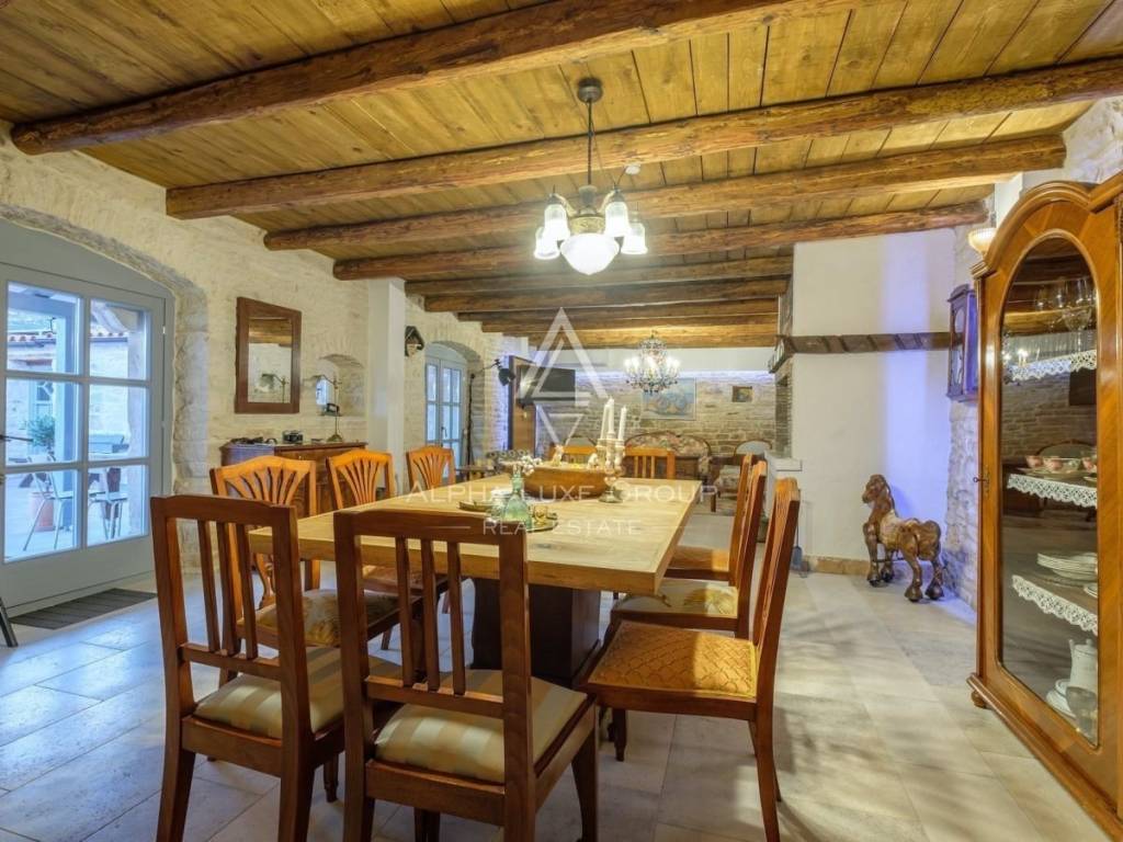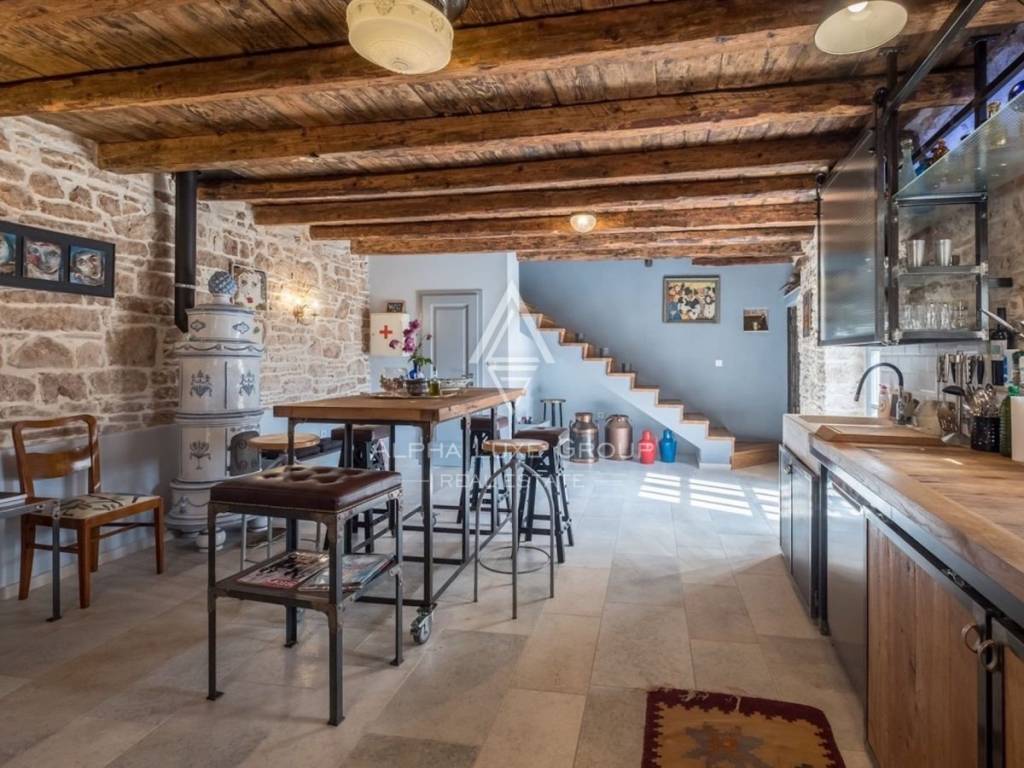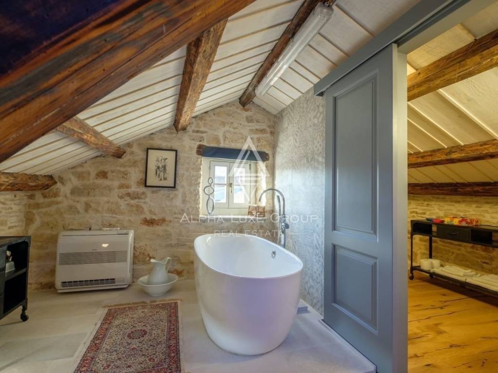 This magnificently decorated villa is for sale in the Rovinj area, 4 kilometres from the village of Svetvincenat, and was completely renovated in 2018. There is a basement, first floor, and attic in the home. A big open-plan living area, kitchen, and dining area with outdoor access are located on the ground level. The wine cellar, which is built in an old well, is a unique feature of this home.