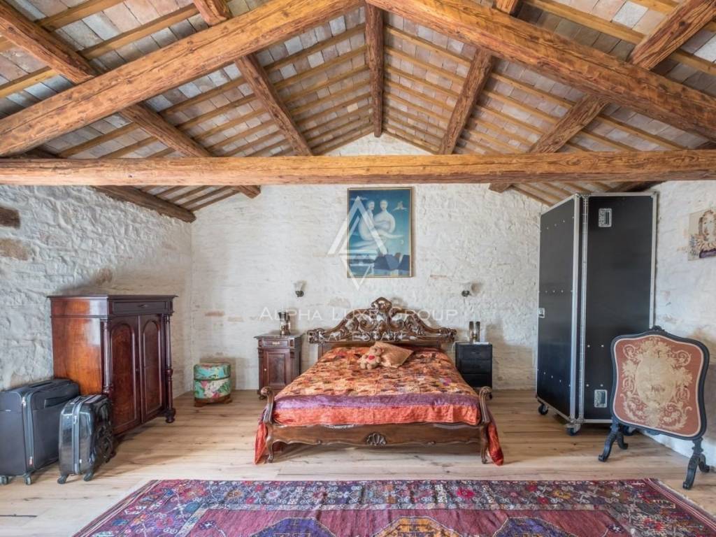 A huge bedroom with private bathroom, as well as two smaller bedrooms with private bathrooms, that share access to the terrace, are on the first level. Another enormous bedroom with shower is located in the attic of the residence. A 30-m2 swimming pool with salt water is located in front of the property, which may be heated if necessary. A summer kitchen, a pool engine room, and a washing area are located next to the pool. It is made of a disused bread oven.
