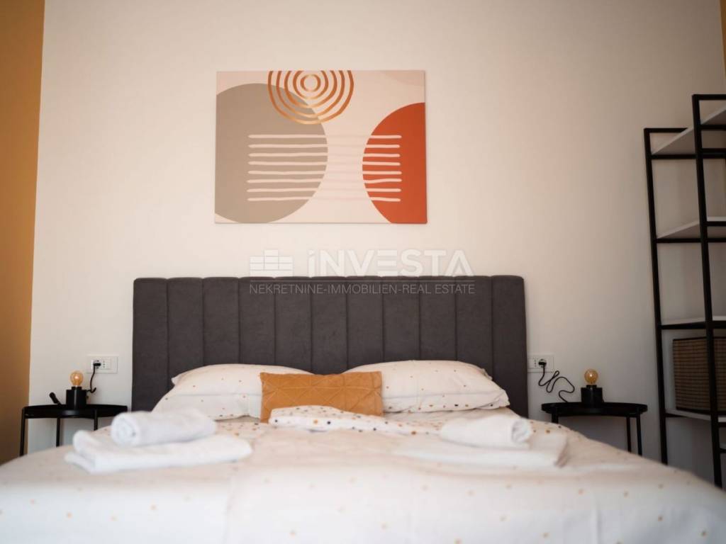 The villa spans two floors and offers a spacious and bright living room connected to the dining area and kitchen, with direct access to the yard. Glass walls provide plenty of natural light, and the kitchen is equipped with high-quality, modern appliances. The ground floor features one bedroom with an en-suite bathroom overlooking the garden and pool, while two additional rooms can be adapted as a garage, wine cellar, recreation room, or even an extra living unit.