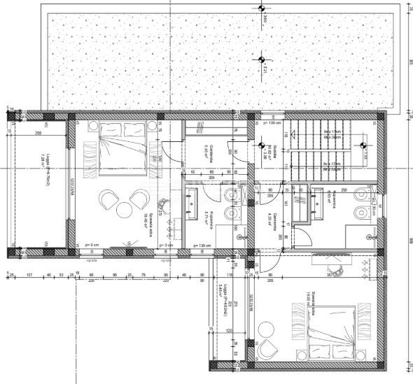 Upstairs, there are two more bedrooms, each with its own bathroom, balcony access, and sea view. The 38.36 m² rooftop terrace is already fitted with jacuzzi installations, creating an ideal private relaxation space with panoramic views.