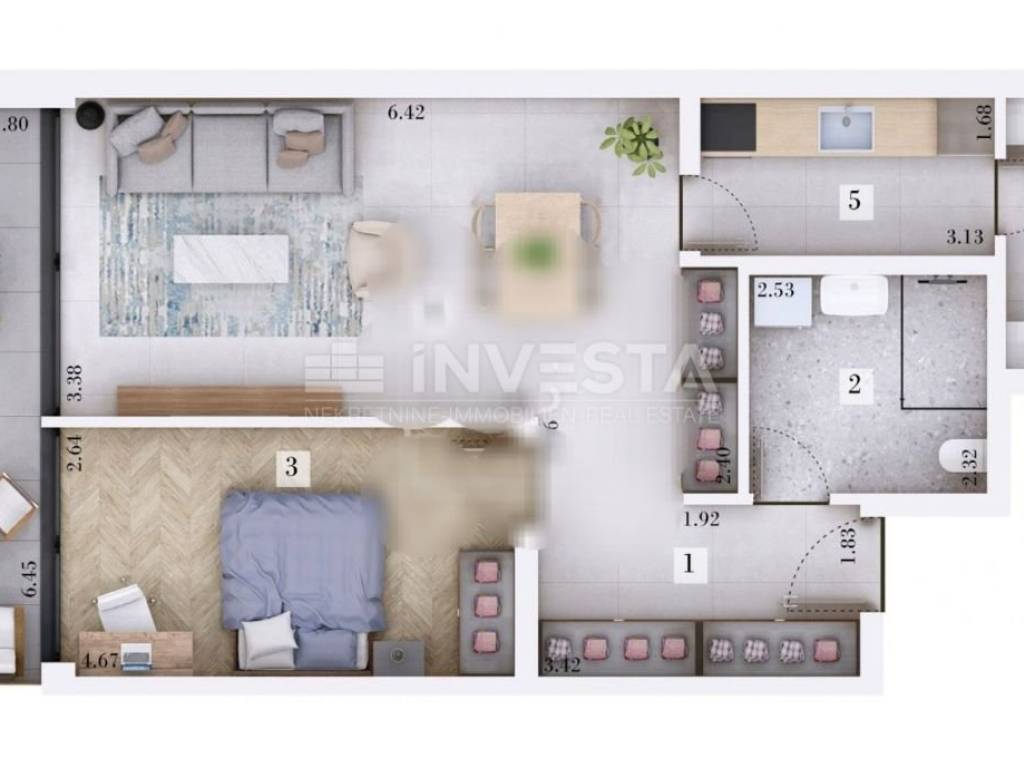 This high-quality new-build apartment, with a modern design, covers a total area of 66.5 m², with an additional garden of approximately 35 m² and a spacious terrace. The apartment consists of a living room with access to the terrace and garden, kitchen, dining area, and a bathroom. The apartment's orientation ensures plenty of natural light throughout the day.