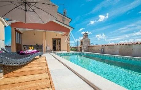 In the serene locale of Marčana in Istria, a modern villa with a heated pool is now on offer. The villa, spanning 170 m², features a living room with a cozy fireplace ambiance, a kitchen with a dining area, four bedrooms, and two bathrooms. It promises peace and privacy, while being conveniently located just 10 minutes from Pula airport, shops, restaurants, and essential facilities. The villa also enjoys proximity to bicycle paths, enhancing its appeal.