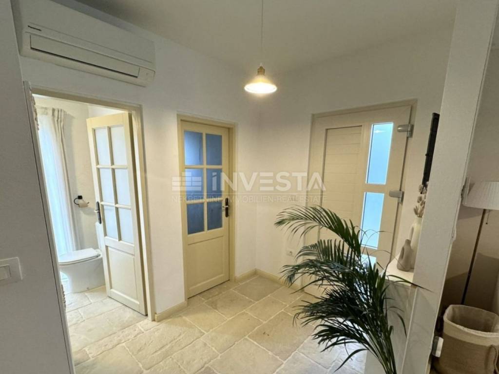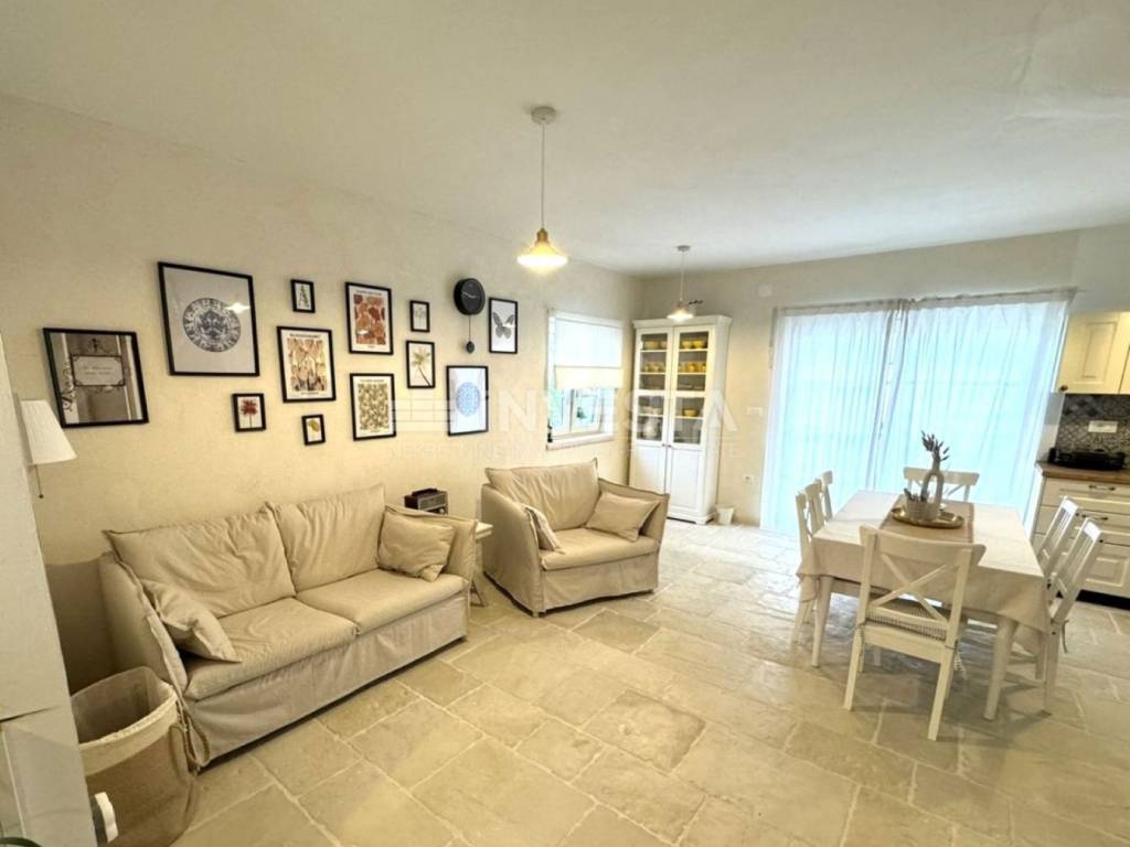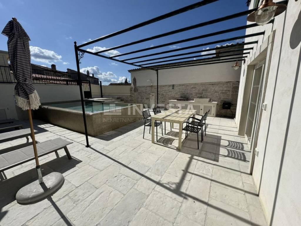 We present a new property for sale, located on a 440 m² plot, featuring a fully equipped two-storey house with a swimming pool, situated in a peaceful village in the municipality of Barban.