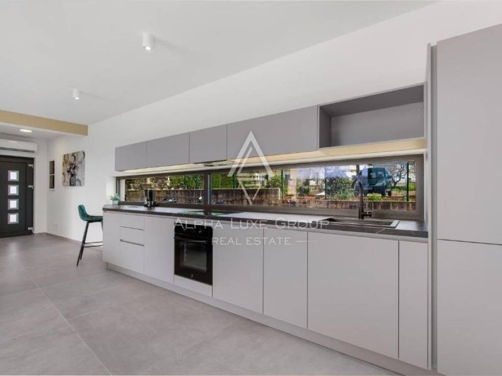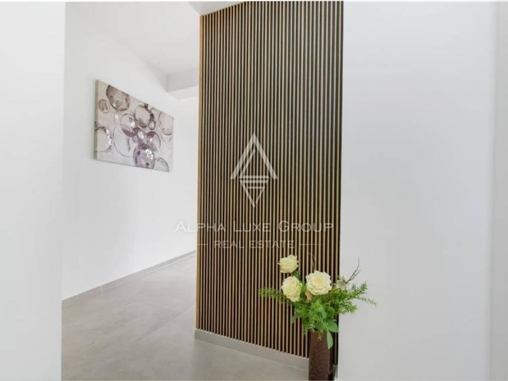 This stunning house spans two floors and includes three stylish bedrooms, three modern bathrooms, a well-equipped kitchen, and a spacious living room that opens to a terrace and a beautifully landscaped garden. The outdoor area features a sparkling swimming pool, perfect for enjoying warm summer days, and provides stunning sea views to enhance your leisure experience.