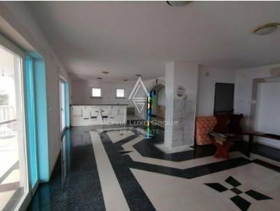 The detached house is for sale in a perfect location with a living area of 600 m2 and a plot space of 1,000 m2, only 50 m from the sea. The house has four floors. The ground floor consists of a kitchen with a dining room and a living room, a bathroom, and two bedrooms with a total area of 136 m2 plus a covered terrace of 43 m2.