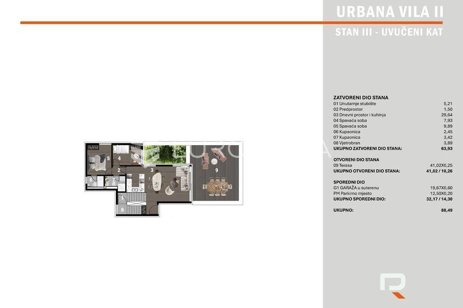 Zagreb, Perjavica, prodaje se trosoban stan u izgradnji ukupne površine 88,49 m2, drugi kat.Sastoji se od: stubišta, ulaznog predprostora, dvije spavaće sobe, dnevnog boravka i kuhinje, dvije kupaonice, terase, garaže i vanjskog parkirnog mjesta. Nalazi se u Vili oznake 2. stan S3.Očekivano useljenje 12/2026 godine.Etažno plinsko grijanje, klimatizirano, podne obloge parket i keramika prve klase te ostala vrhunska oprema.Za sve dodatne informacije stojimo vam na raspolaganju.