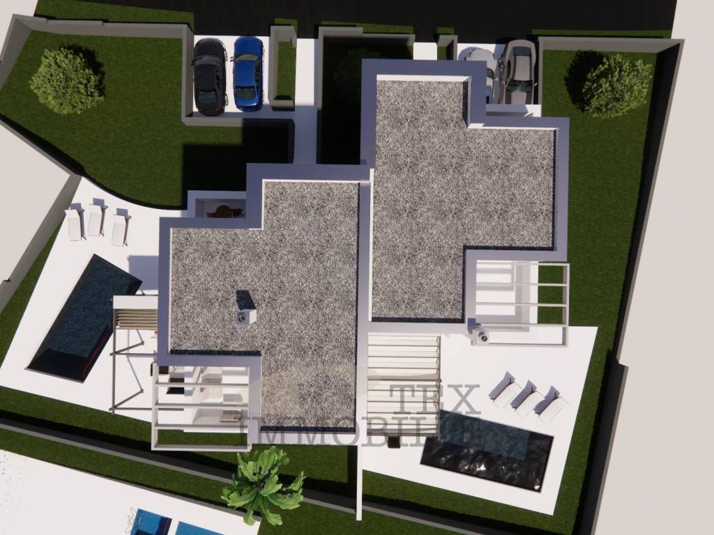 In the vicinity of Poreč, a semi-detached house under construction is for sale. The villa will consist of a bedroom with bathroom, living room, kitchen and toilet on the ground floor. On the first floor there will be three bedrooms, two bathrooms, a terrace and a balcony. There will be a swimming pool and two parking spaces in the yard of the house. The house is sold on a turnkey basis. Heating and cooling will be with split inverter air conditioning.