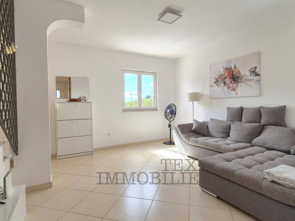 Poreč A beautiful house for sale, located in a quiet residential area just a ten-minute walk from the beach. The house, with a surface area of 103 m², consists of three bedrooms, two bathrooms, a spacious living room connected to the dining area, and a fully equipped kitchen.