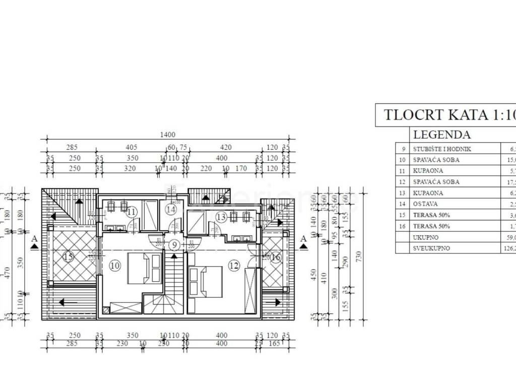The house has a total area of 126 m, distributed over the ground floor and first floor, with a well-thought-out layout:
