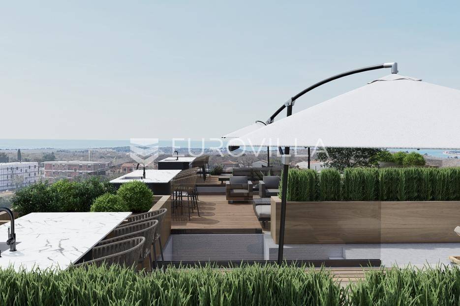 U Taru, nedaleko od centra, nalazi se novo naselje sa apartmanima.Stan oznake "D12" nalazi se na trećem katu stambene zgrade.Stan se sastoji od ulaznog hodnika, open space kuhinje, blagovaonice i dnevnog boravka s izlazom na terasu, 2 spavaće sobe od kojih jedna ima izlaz na balkon, kupaonice. Stan ima vlastitu krovnu terasu sa pripremom za jacuzzi, saunu, ljetnu kuhinju i 2 parkirna mjesta koja su uključena u cijenu.Podno grijanje u cijelom stanu, klima uređaj, kvalitetna talijanska keramika, Villeroy i Boch sanitarije.Izgradnja će započeti krajem 2024. godine.Posebna ponuda:Promotivna cijena za prvih 10 kupaca.Za više informacija stojimo vam na raspolaganju.