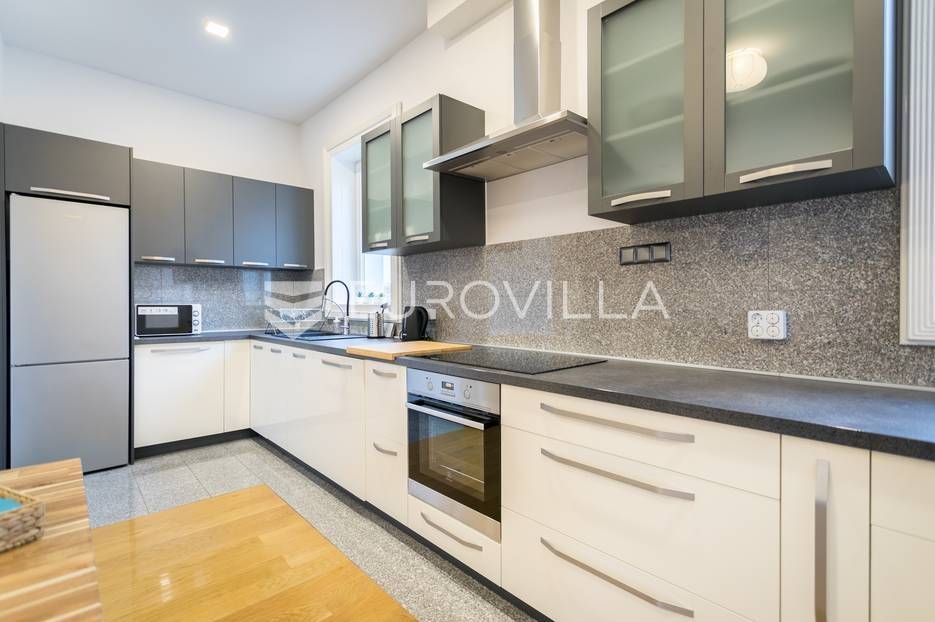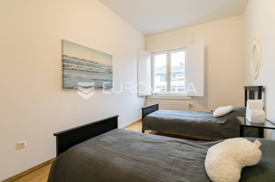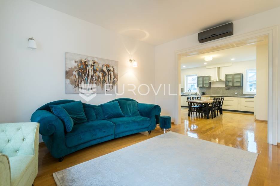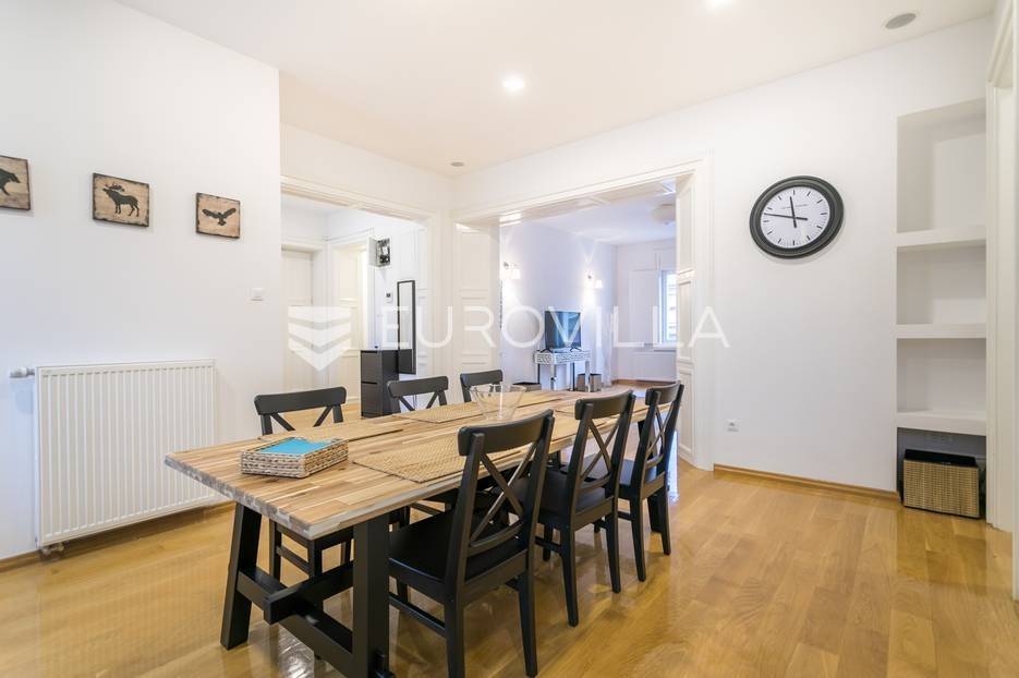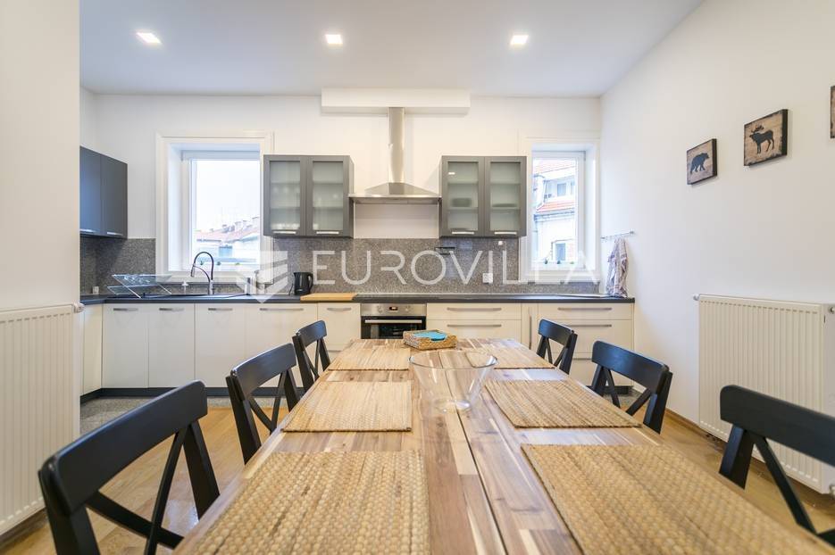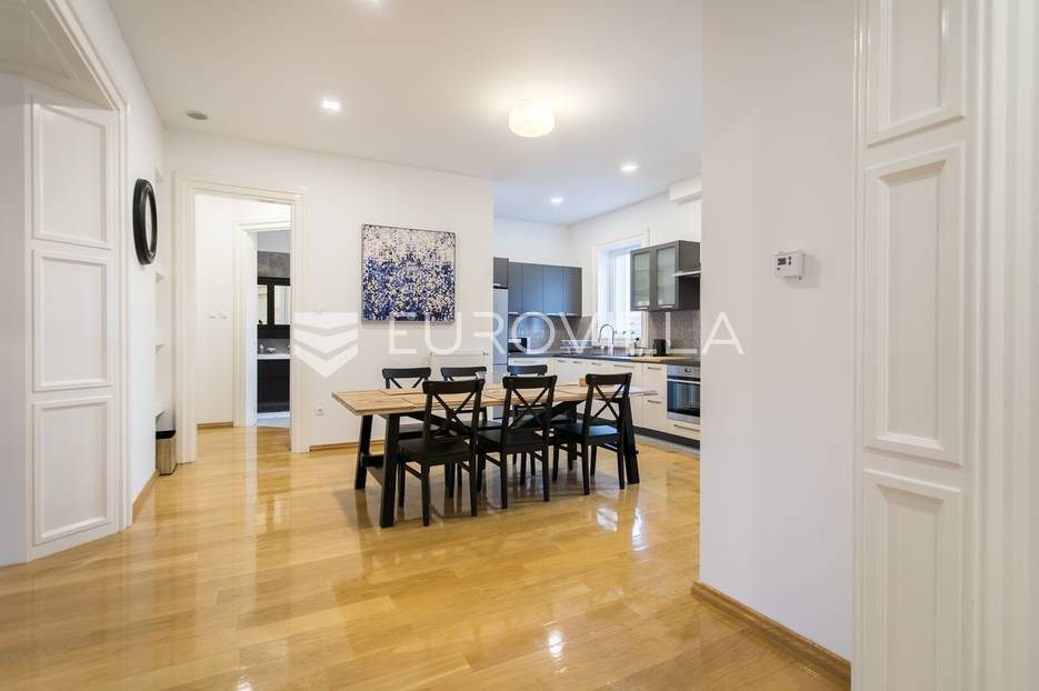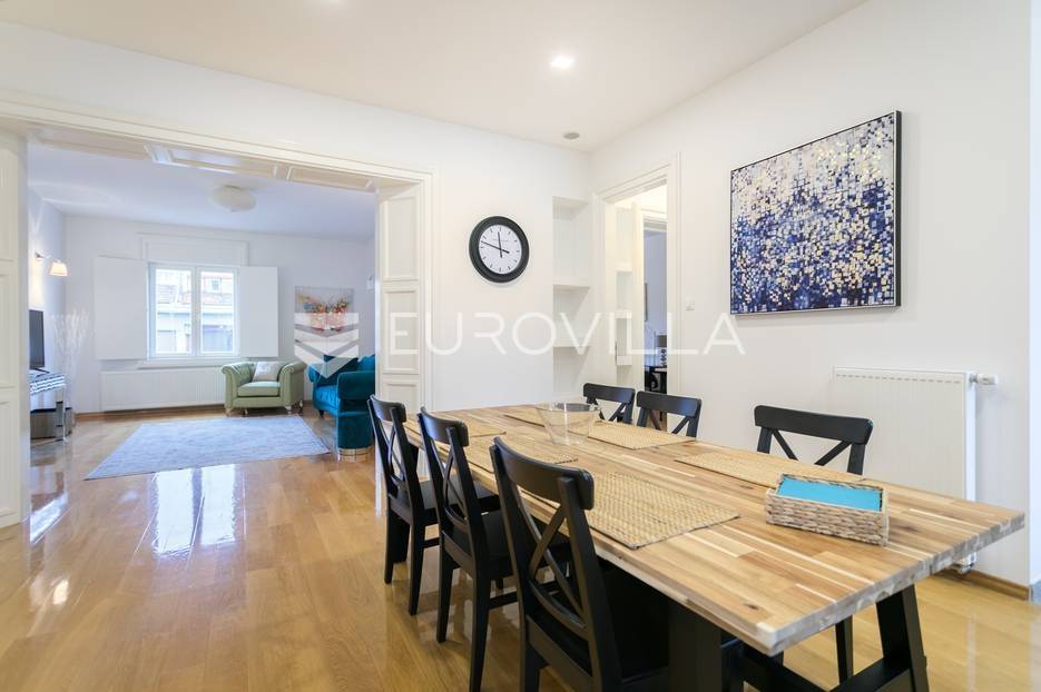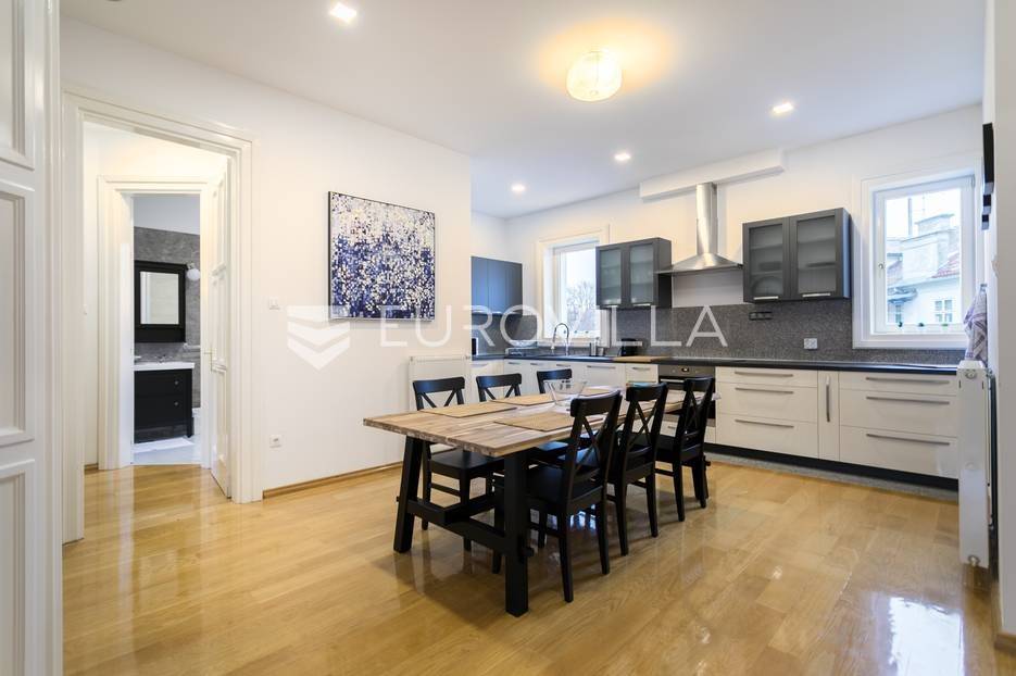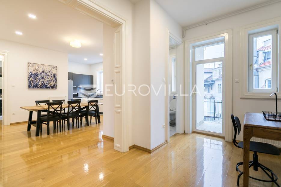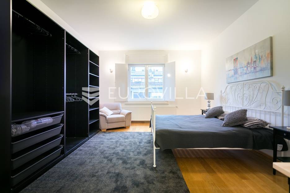Centar, Draškovićeva, potpuno uređen i namješten peterosoban građanski stan površine 170 m2 na trećem katu. Sastoji se od open space prostranog dnevnog boravka s blagovaonicom i kuhinjom, balkona, tri spavaće sobe, kupaonice te master spavaće sobe s garderobom i kupaonicom. Mogućnost najma parkirnog mjesta. Idealna lokacija, blizina svih bitnijih sadržaja. Ostale informacije na upit.